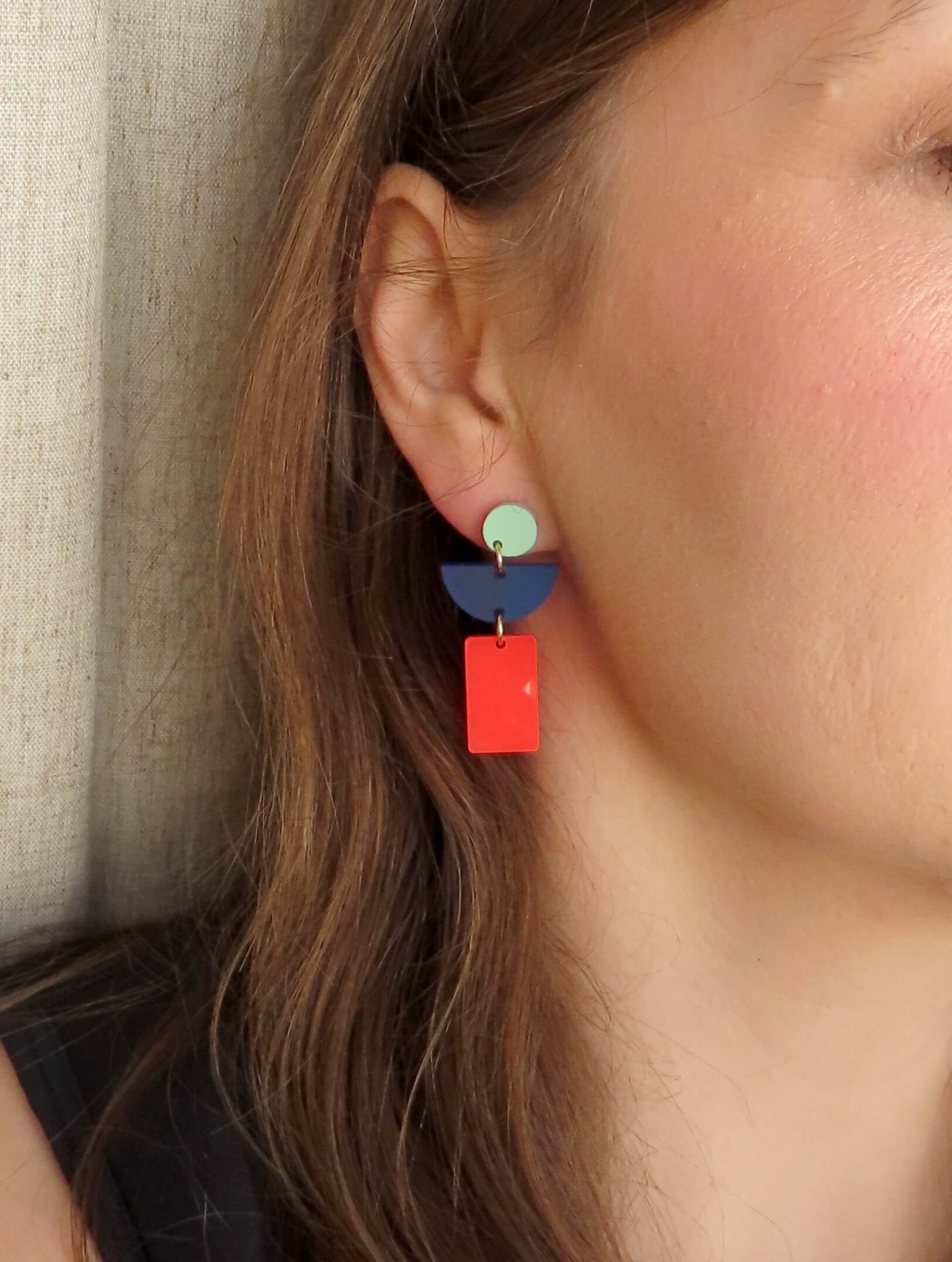 Maße: 3,5 cm lang × 2 cm breit Farben: Orange, Pink, Feuerrot Material: Acryl, Edelstahl (hautfreundlich) Formen: Kreis, Halbkreis, Rechteck Unsere Lille... Lesen Sie mehr
