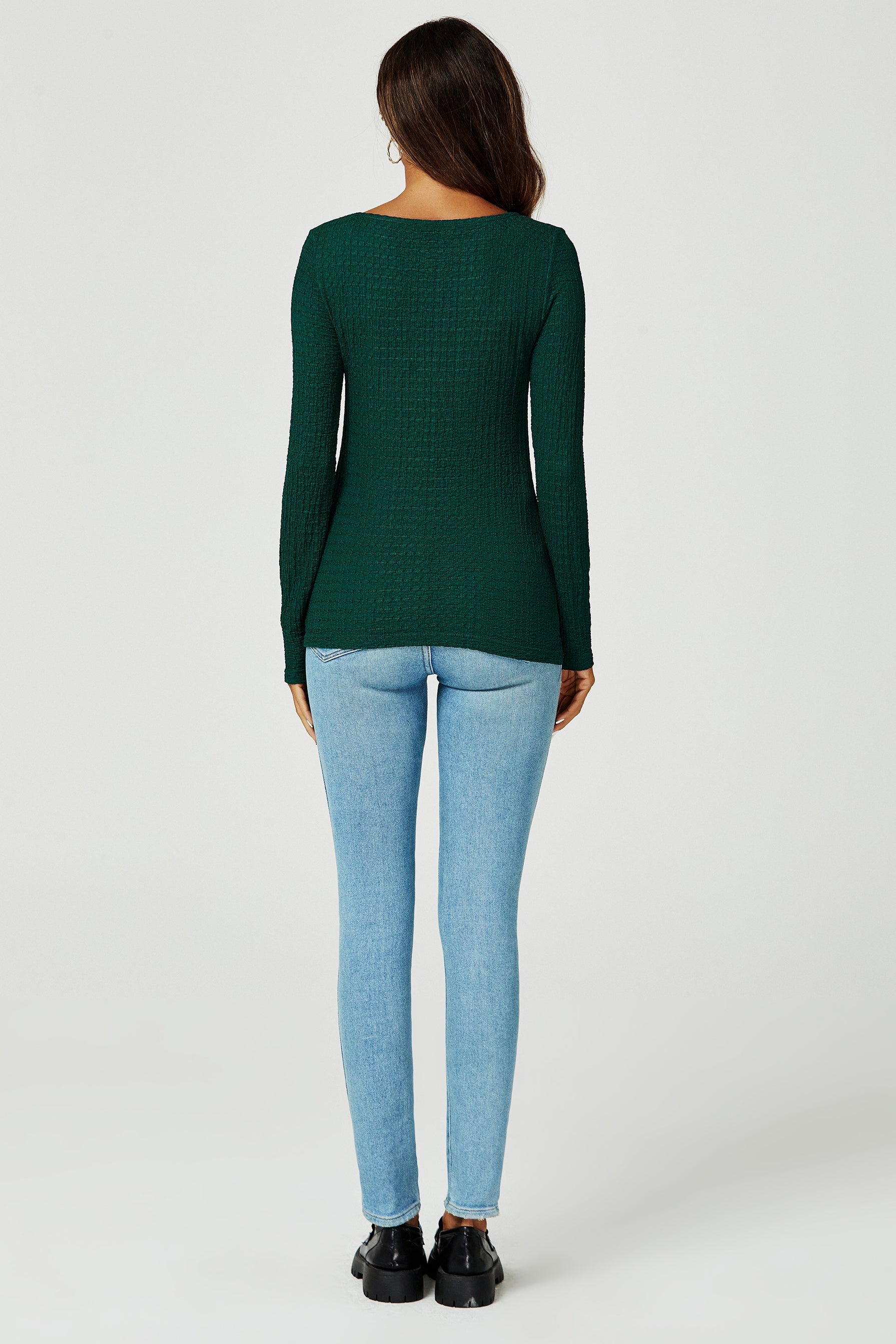 Introducing our Ruched Stretch Square Neck Long Sleeve Top, a wardrobe essential that seamlessly combines comfort with style. The square neckline adds a modern and sophisticated touch, while the ruched detailing on the sleeves enhances the overall design with a hint of contemporary flair. The stretch fabric ensures a flattering and comfortable fit, making this top perfect for all-day wear. Whether paired with tailored trousers for a polished office look or with your favorite jeans for a casual outing, this versatile piece effortlessly transitions from day to night. Elevate your everyday style with the understated elegance of our Ruched Stretch Square Neck Long Sleeve Top.