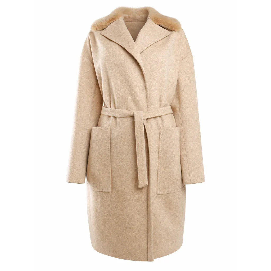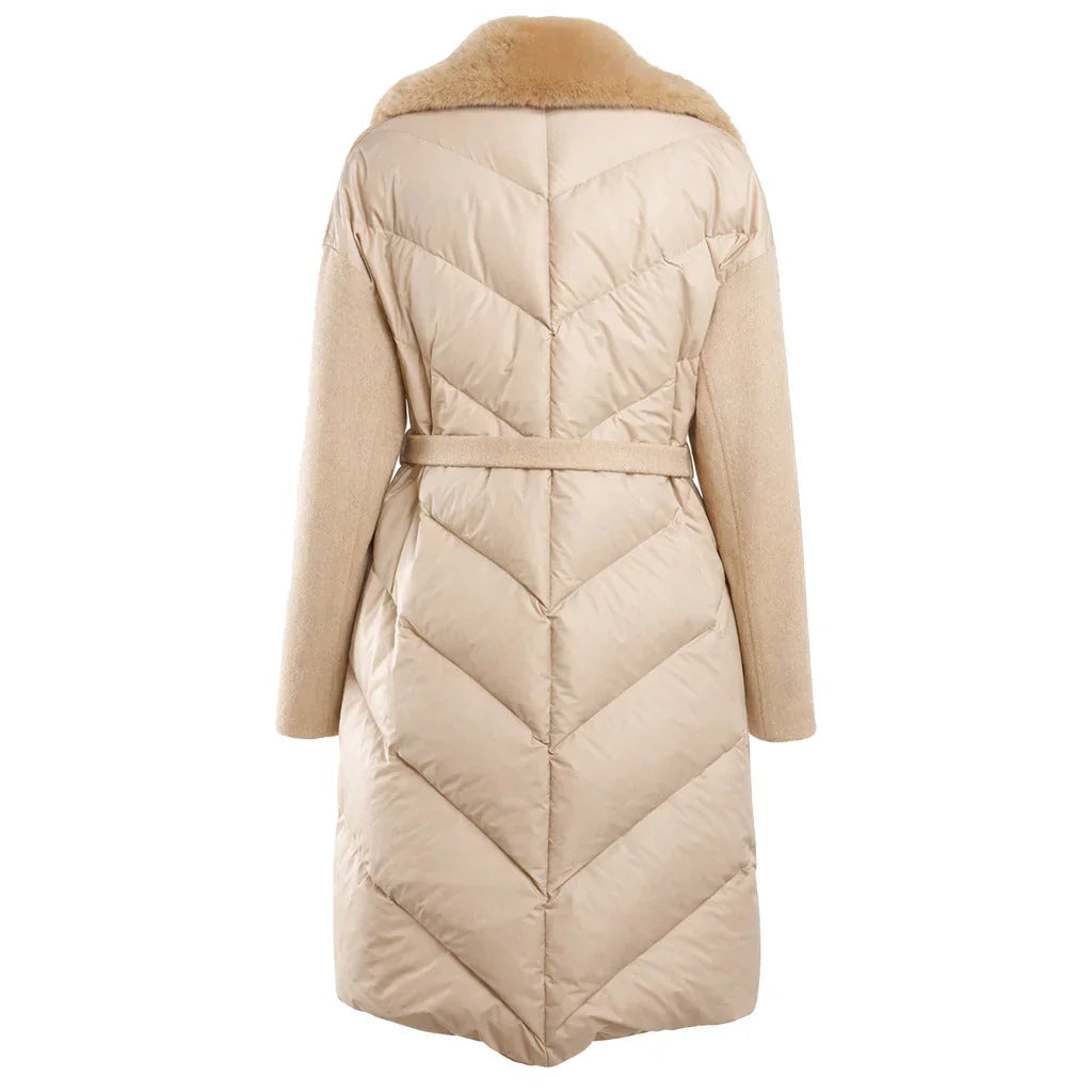 Loro Piana Fabric long coat in virgin wool with quilted back, fur collar, and belt. Made in Italy Lesen Sie mehr