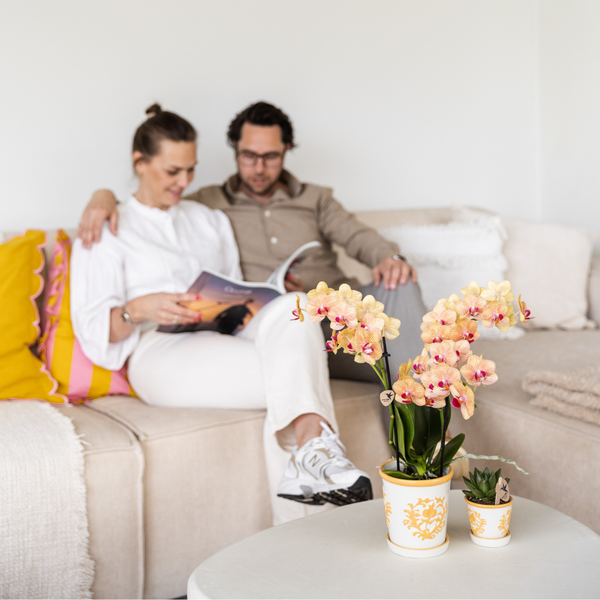 Der Malaga Blumentopf Orange Ø9cm sorgt mit seinem mediterranen Design für fröhliche Farbakzente in deinem Zuhause. Sein sonniges Muster erinnert an handgefertigtes Porzellan und bringt das Gefühl von Urlaub, Sonne und Sommer direkt ins Interieur.