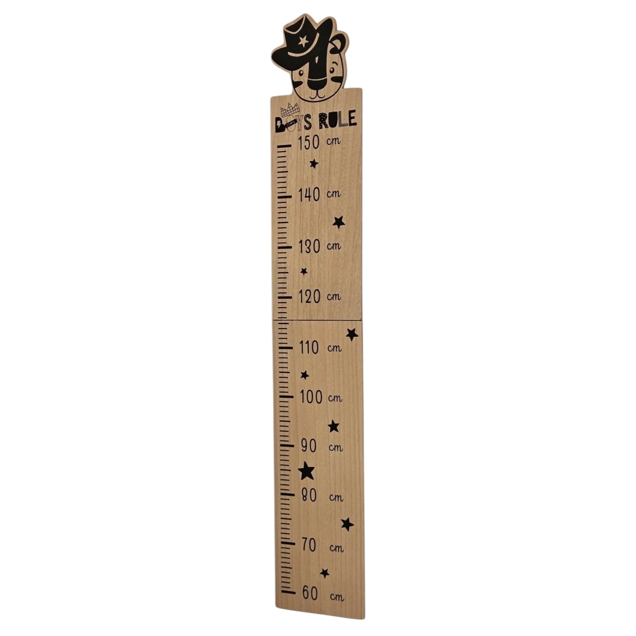 Die Skala reicht von 60 bis 150 cm und begleitet Ihr Kind über viele Jahre hinweg. Die klare, schwarze Beschriftung hebt sich wunderbar vom braunen MDF-Holz ab und sorgt für genau ablesbare Messwerte – immer und immer wieder.