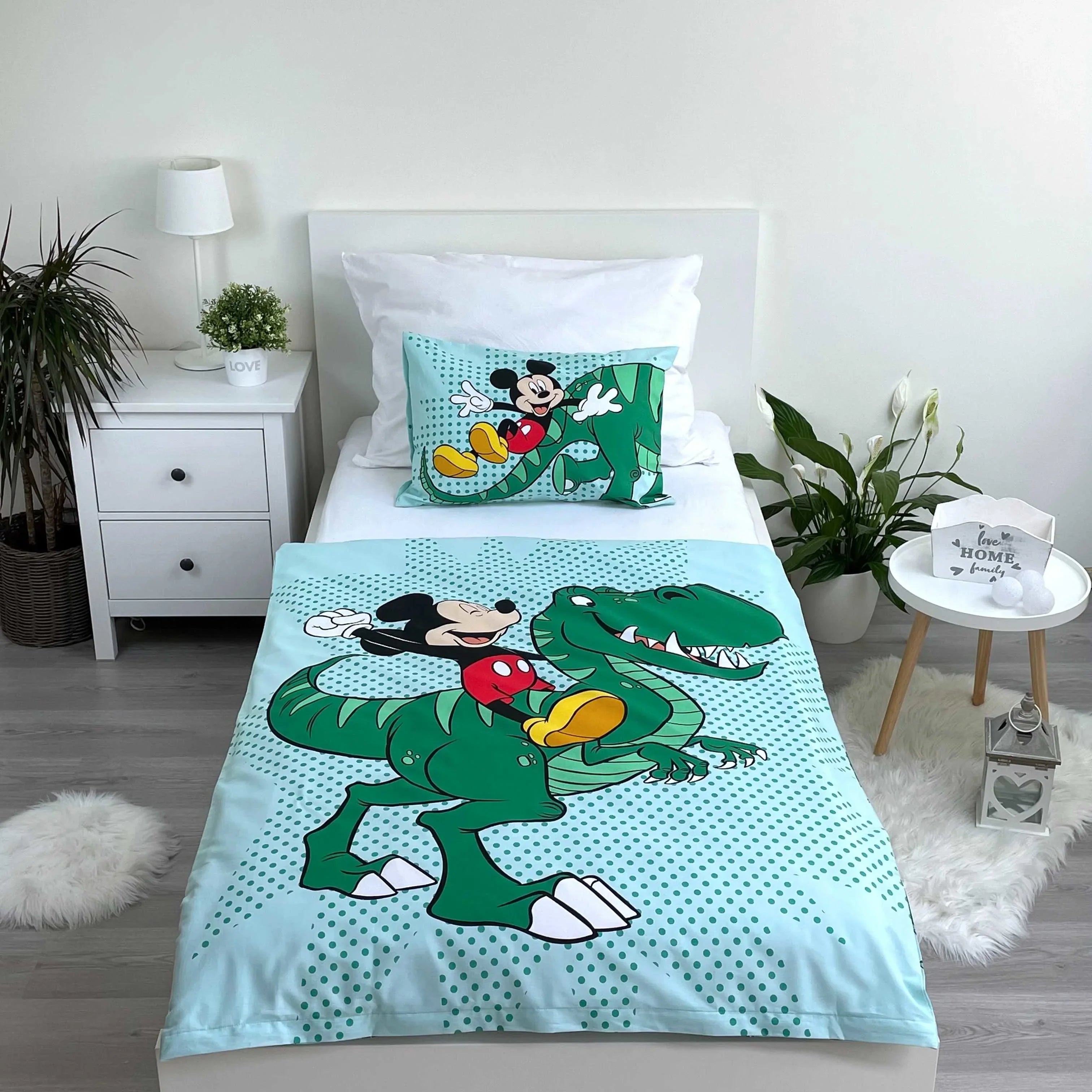 Micky Maus Dino Kinder-Bettwäsche 100 x 135 cm - weiche Baumwolle