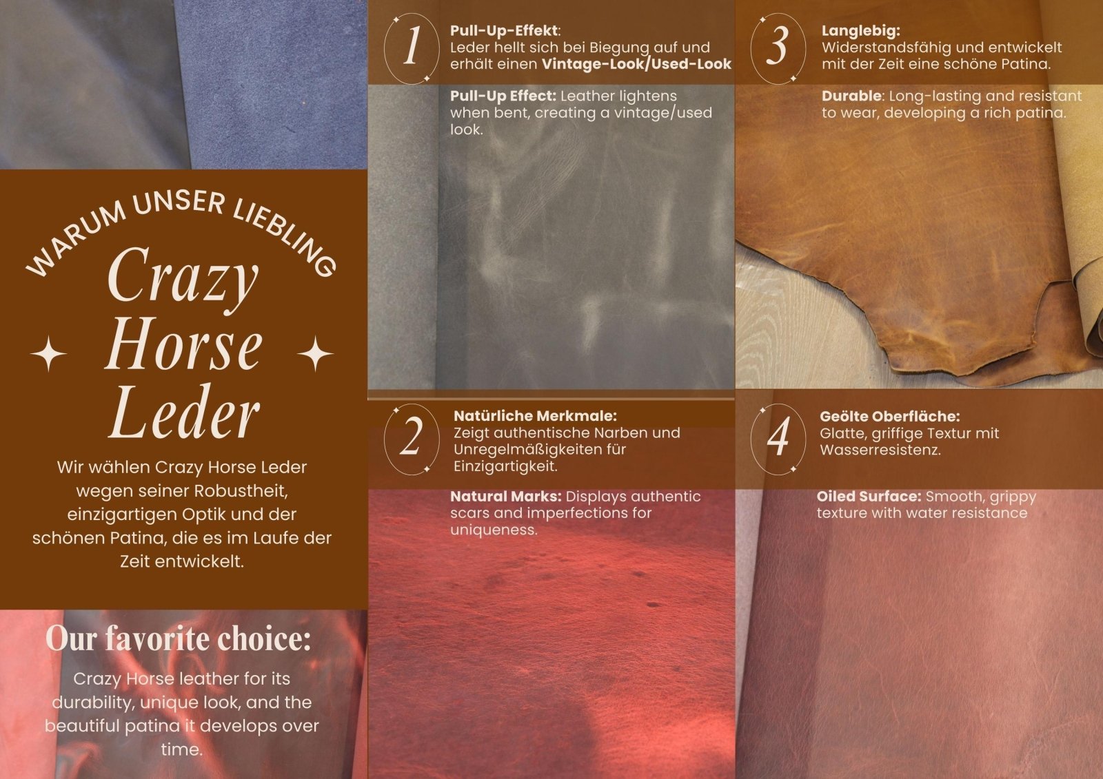 🌿 Nachhaltigkeit & Verantwortung Wir setzen auf verantwortungsbewusstes Lederhandwerk und achten darauf, dass unser Leder in Italien nach strengen Umwelt- und Sicherheitsstandards gegerbt wird. Unsere Produkte sind keine Massenware, sondern langlebige Begleiter fürs Leben.
