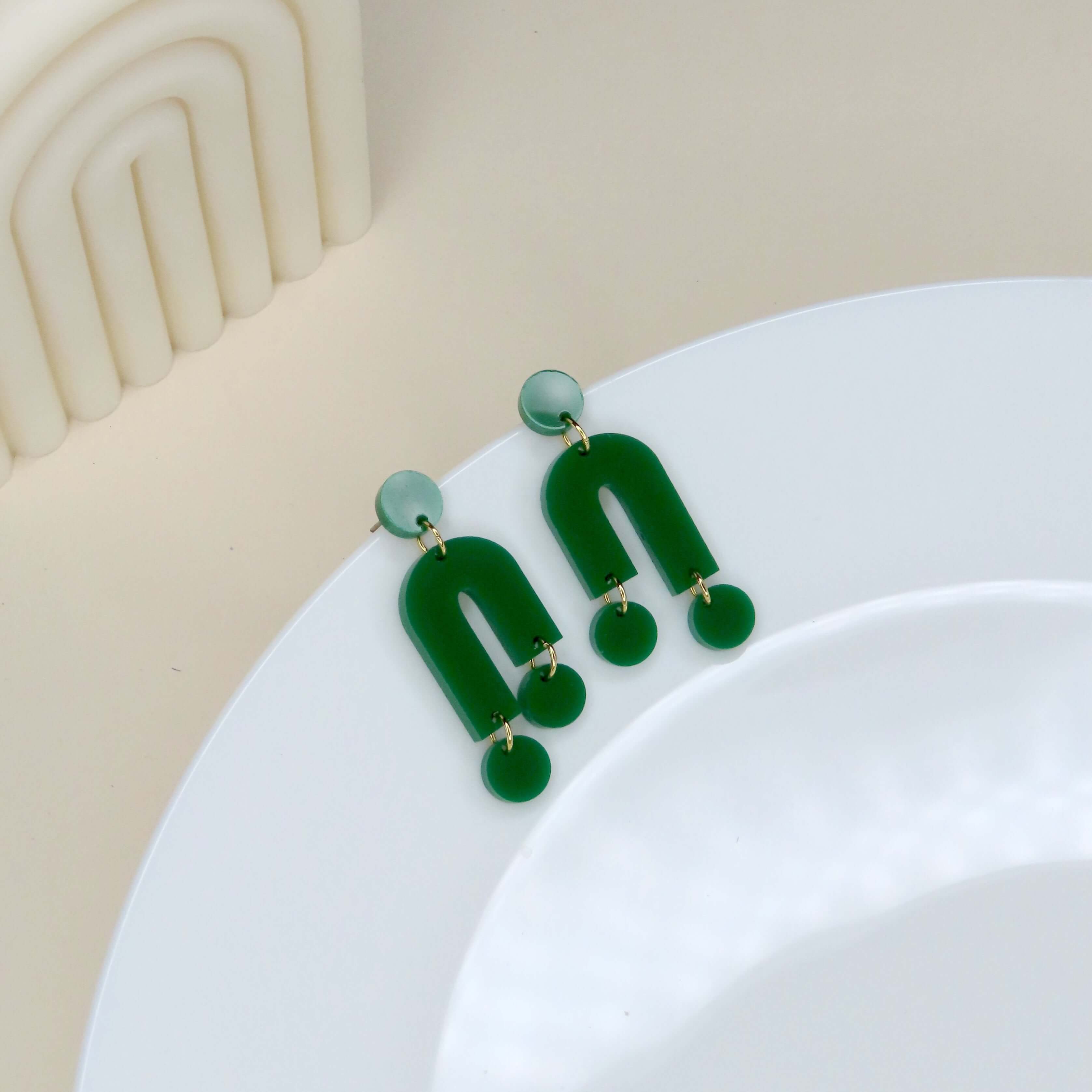 Mismatch Ohrringe aus Acryl in froschgrün