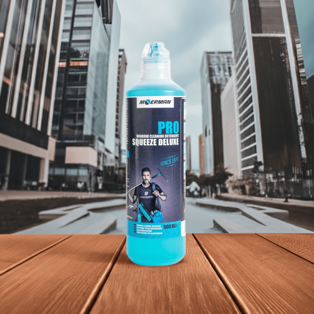 Der MOERMAN Squeeze Deluxe Glasreiniger ist speziell für die Anforderungen professioneller Fensterreiniger entwickelt. Seine hochkonzentrierte Formel sorgt für eine hervorragende Reinigungsleistung bei gleichzeitig hoher Ergiebigkeit – schon eine kleine Menge genügt, um Glasflächen streifenfrei sauber zu bekommen.