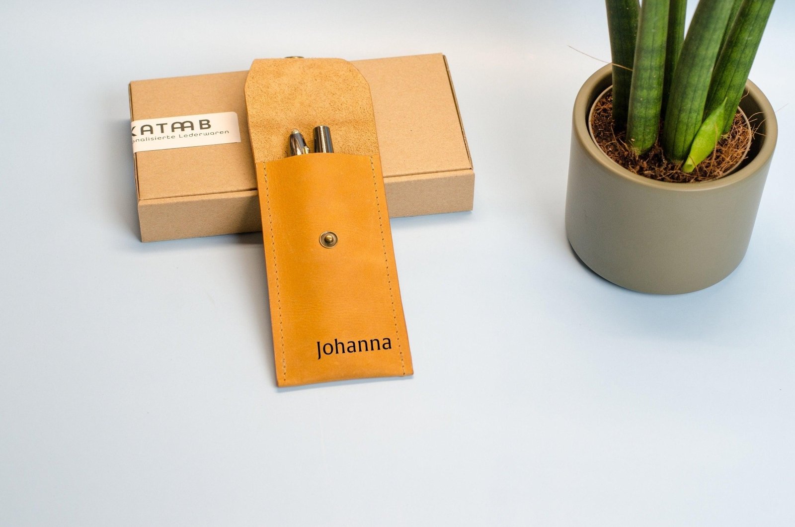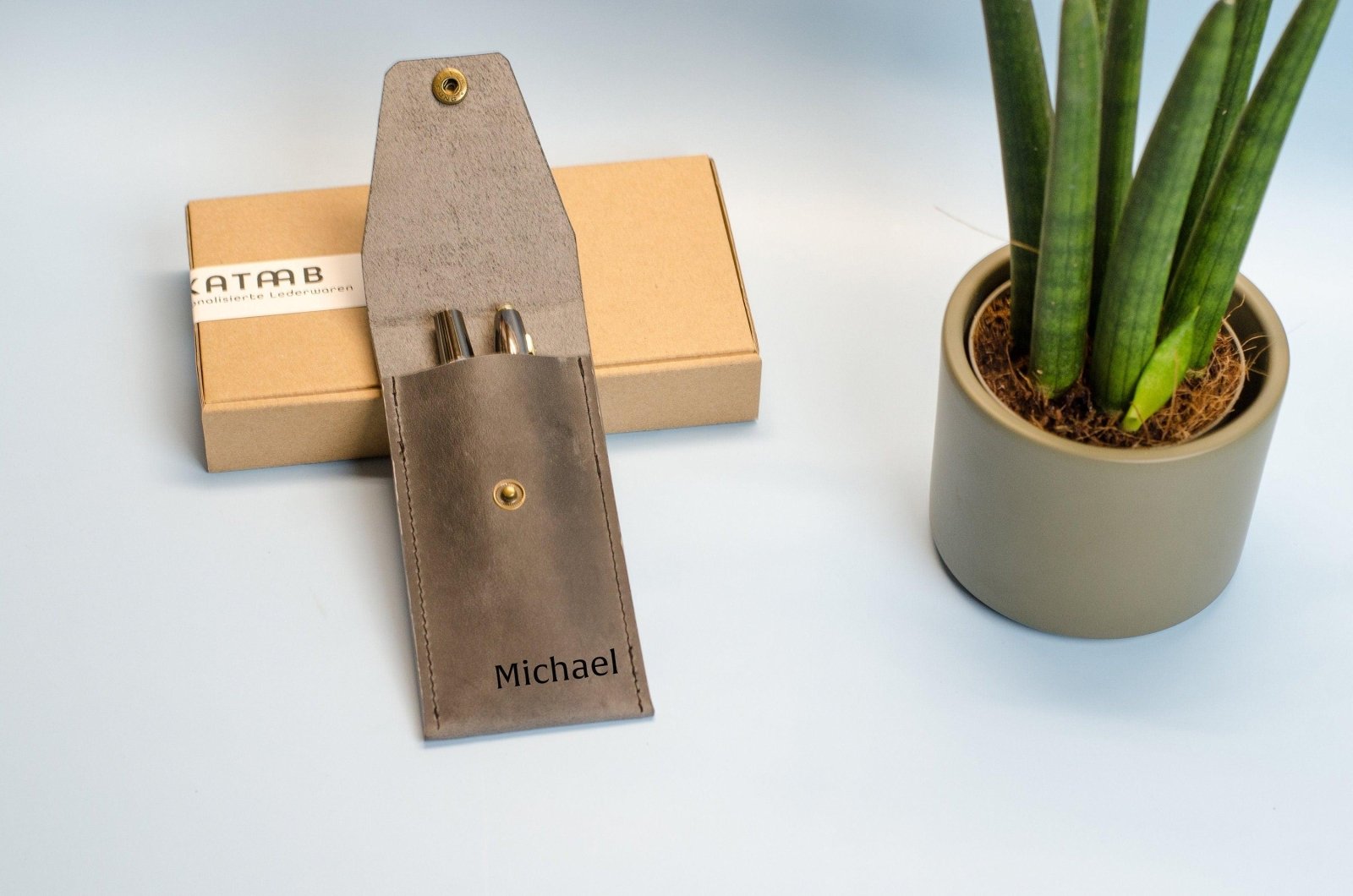 Monogram Stiftetui aus Leder. Größe cir. 15x7cm.Bleistifthalter aus Leder mit Gravur. Personalisiertes Stiftetui aus Leder.Leder Stifthülle.