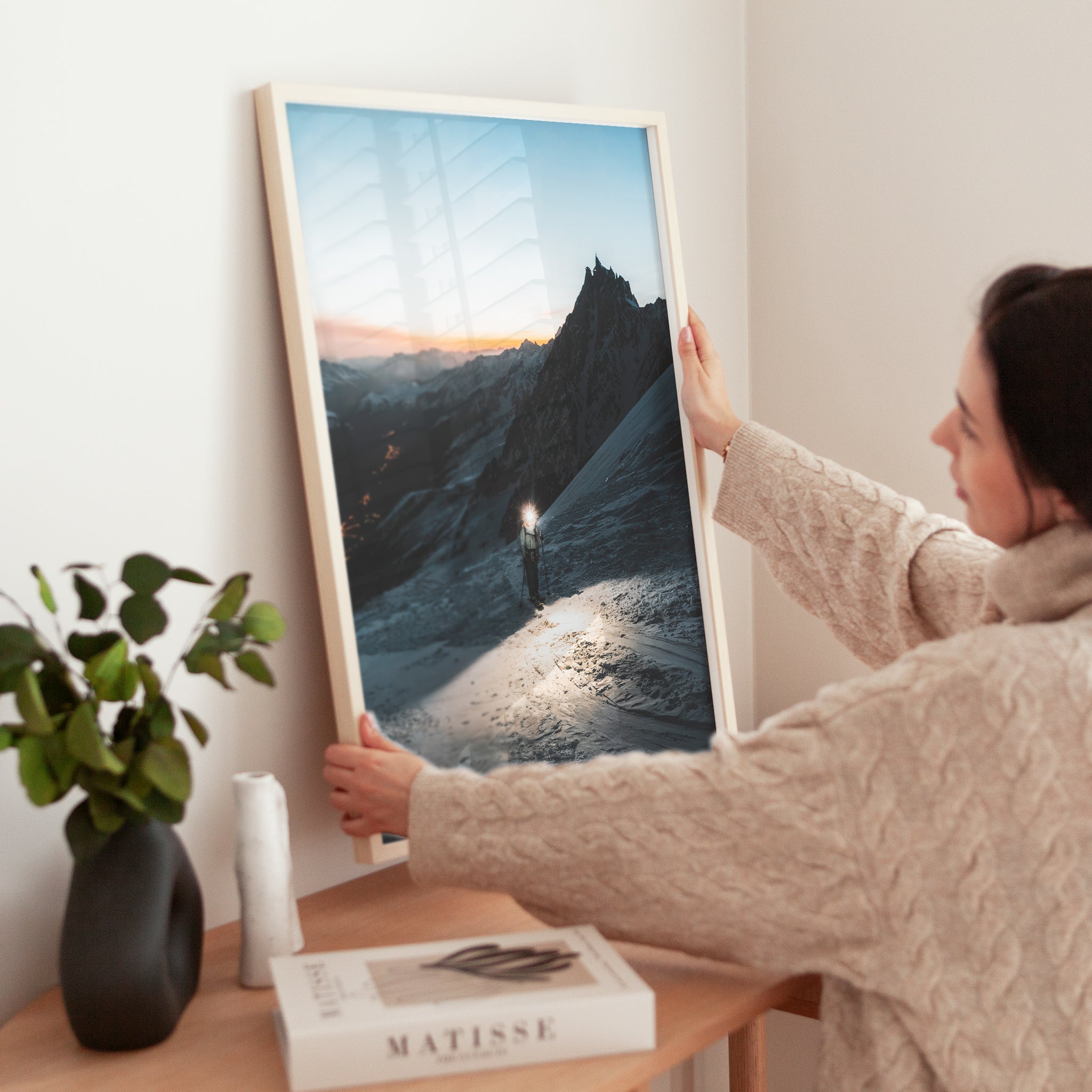Mountaineer on Grands Mulets Route to Mont Blanc – Chamonix Art Print