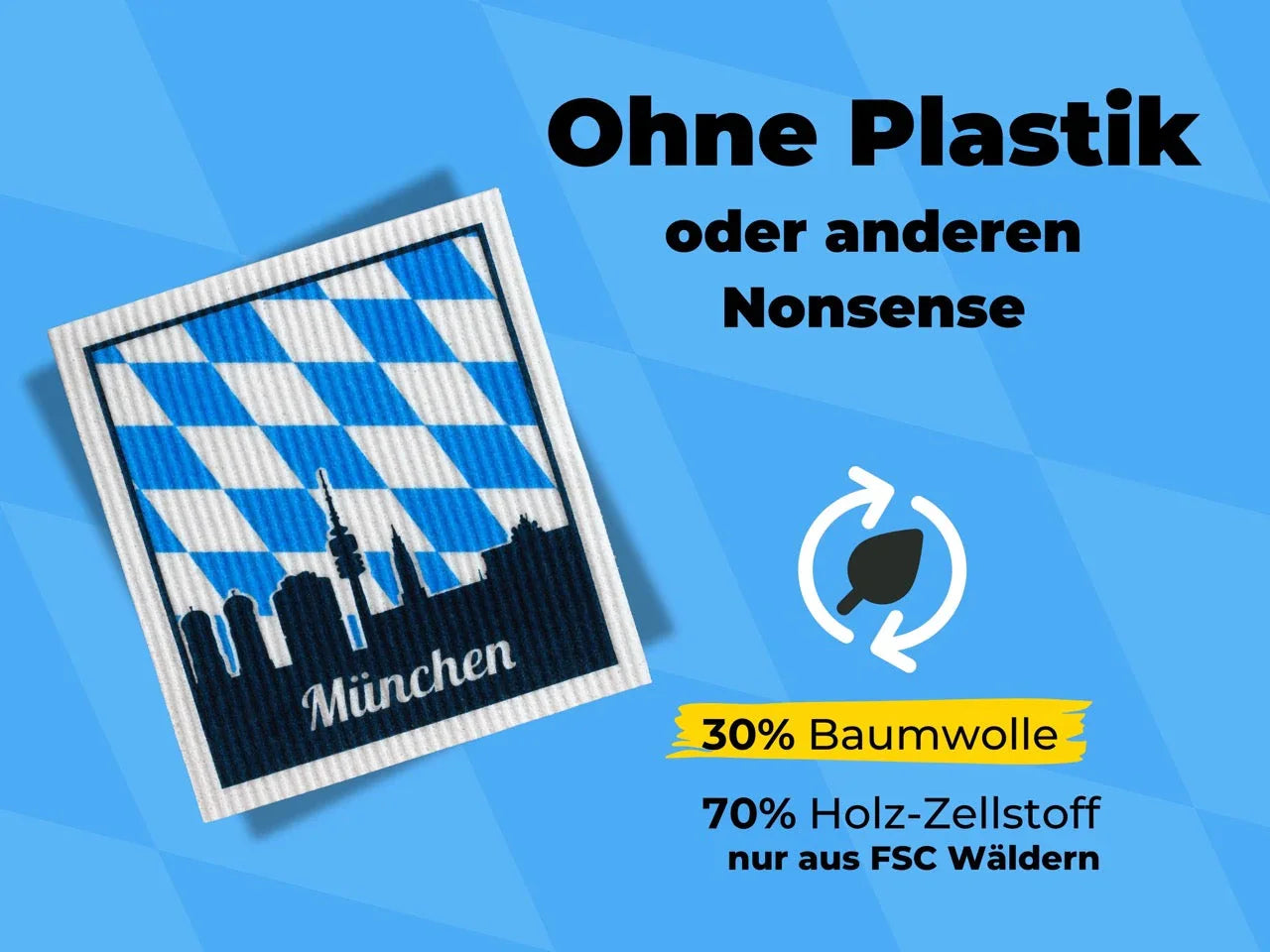 Nicht nur für eingefleischte Münchner. Die wiederverwendbaren Baumwoll Spüllappen machen sich auch super als Souvenier und Erinnerung an deinen Besuch in der schönsten Stadt Deutschlands. Genug Krempel in der Abstellkammer? Zugegeben, Spültücher sind ein sehr kratives, kleines Geschenk, aber eines, von dem du täglich etwas hast (und sogar deine anderen Mitbringsel entstauben kannst..)