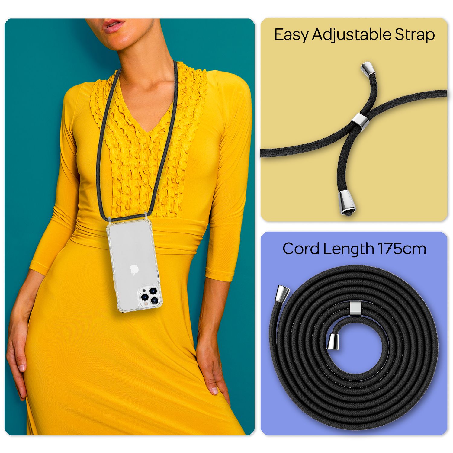 Das 160 cm lange Handyband ist angenehm zu tragen und extra widerstandsfähig gegen Verheddern. Du kannst dein Smartphone flexibel über der Schulter, um den Hals oder als Crossbody tragen – je nachdem, was für dich am besten passt.