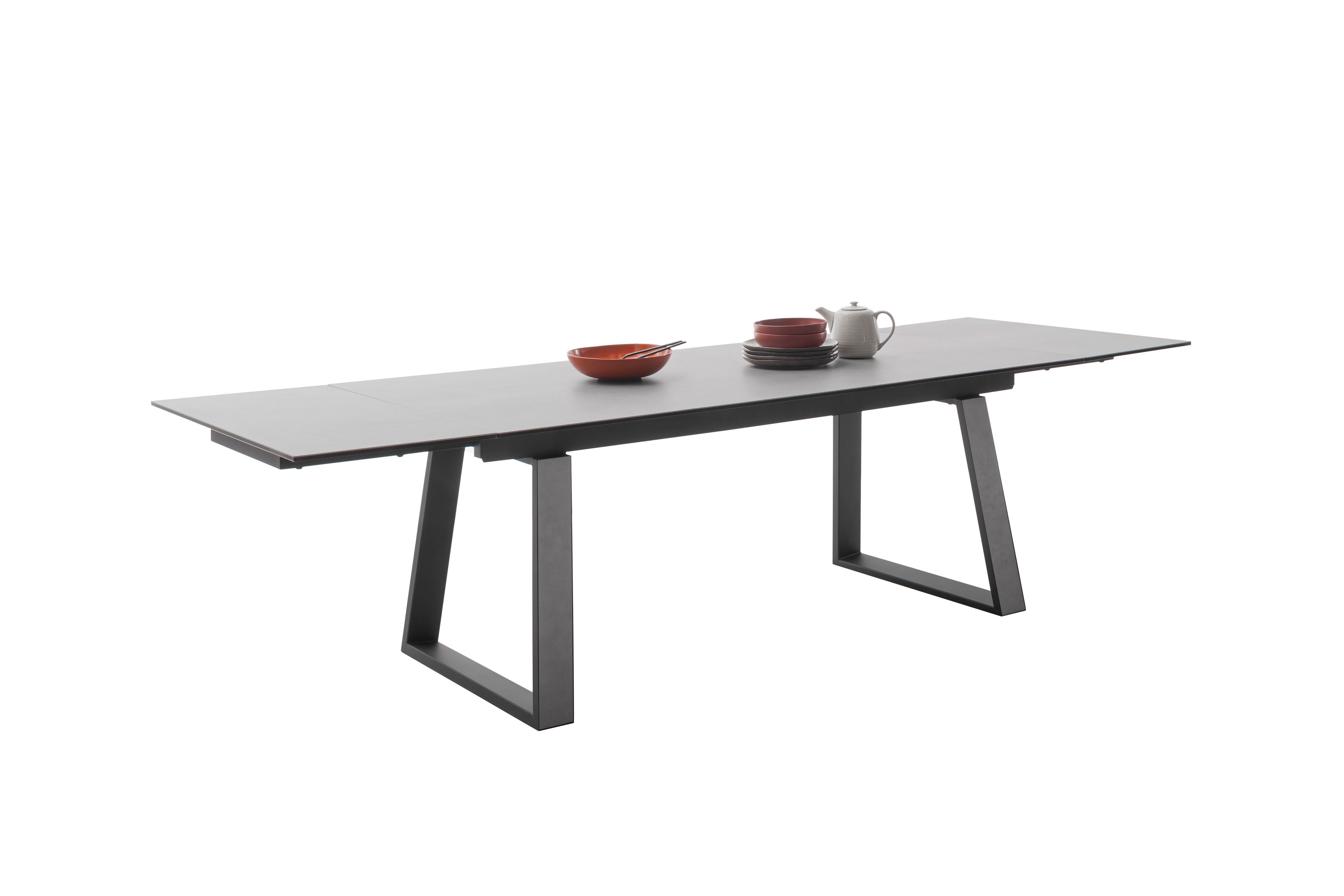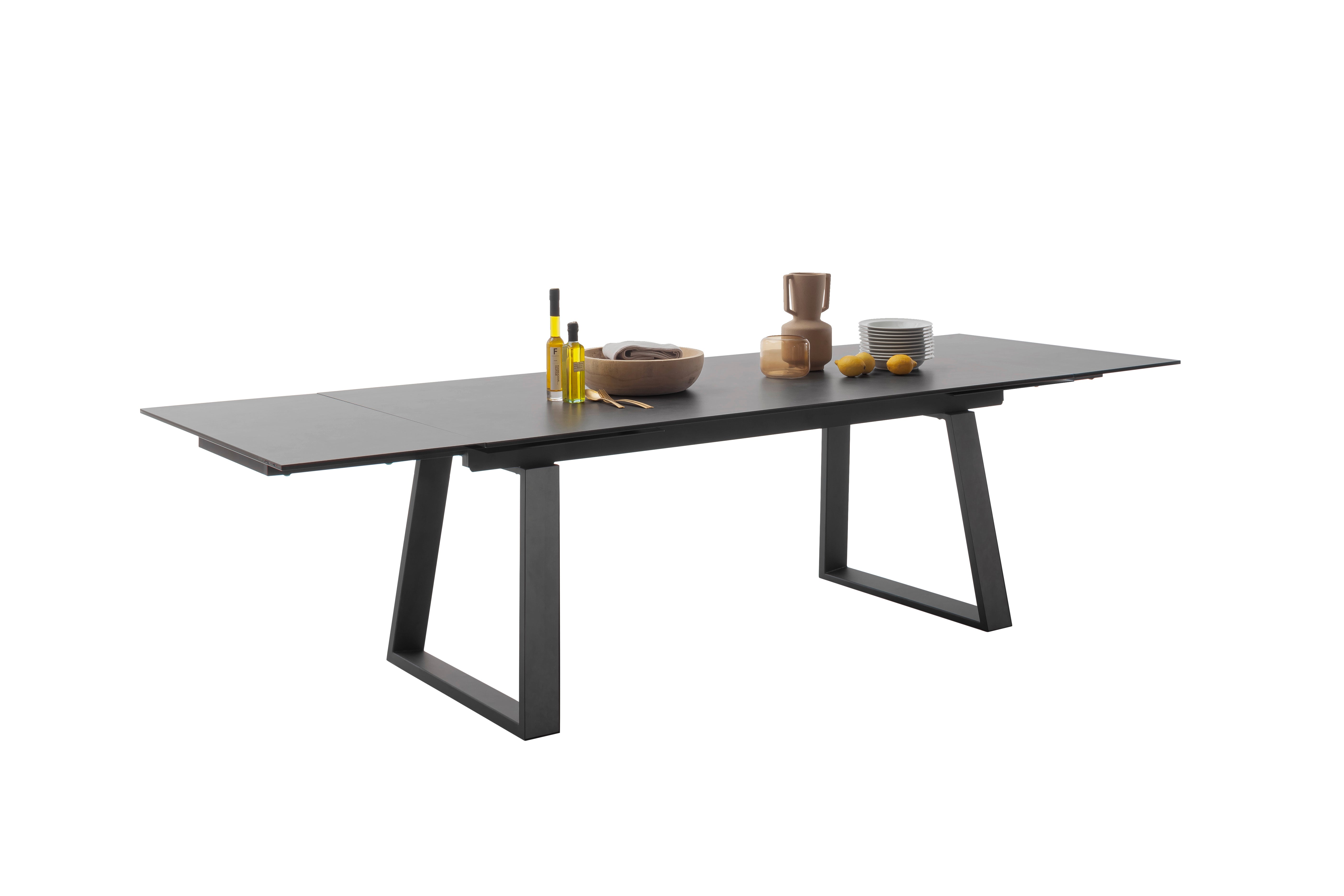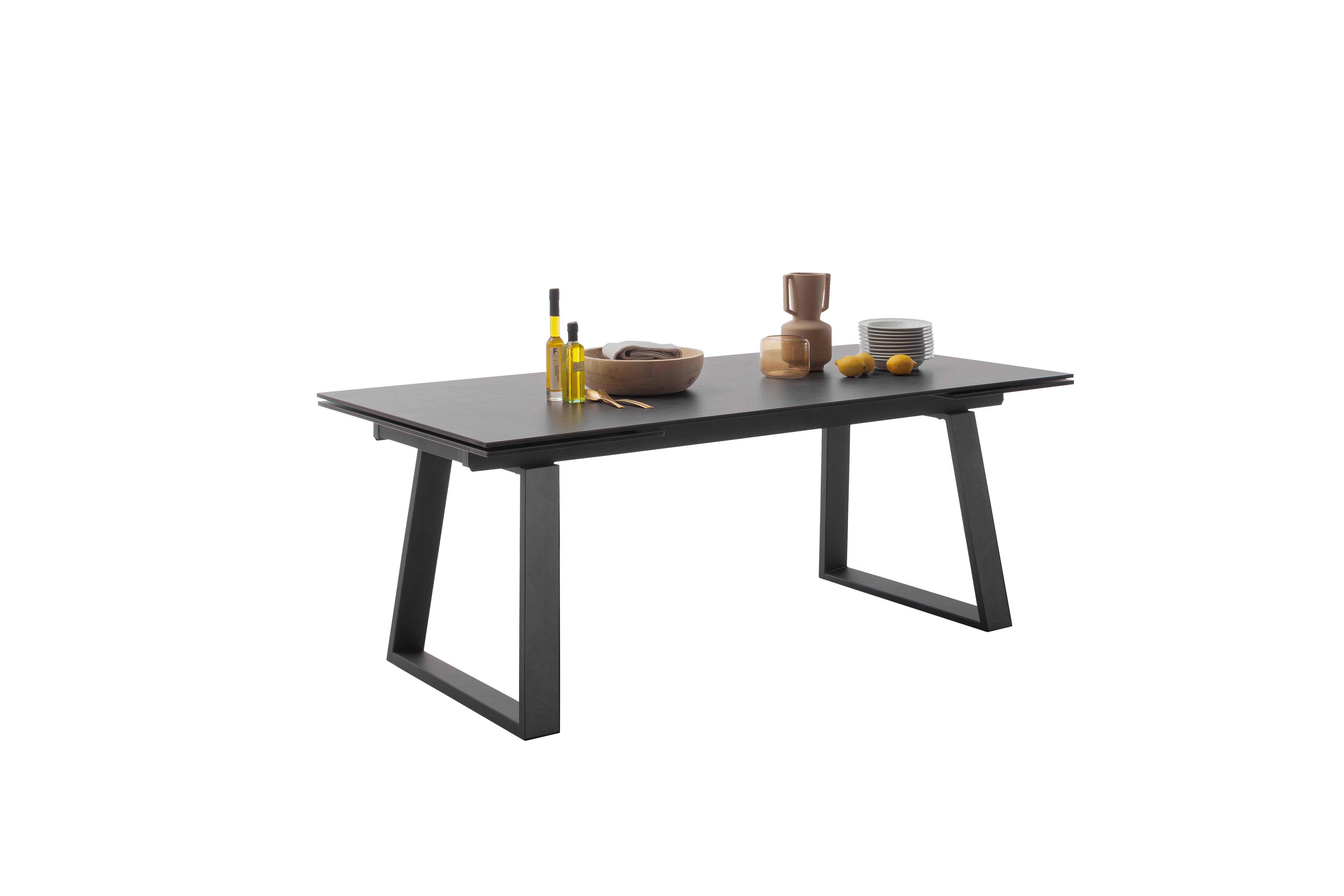 Kufentisch mit Auszug Stirnauszug B/H/T ca. 200 (300) / 76 / 100 cm Keramik / Sicherheitsglas schwarz lackiert / 13mm... Lesen Sie mehr