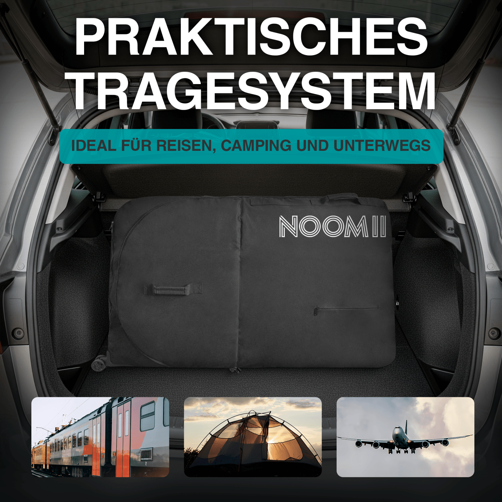 Die NooMii Fahrrad-Transporttasche wurde speziell für alle entwickelt, die ihr Fahrrad sicher, sauber und bequem transportieren möchten – ob im Auto, Zug oder Flugzeug.