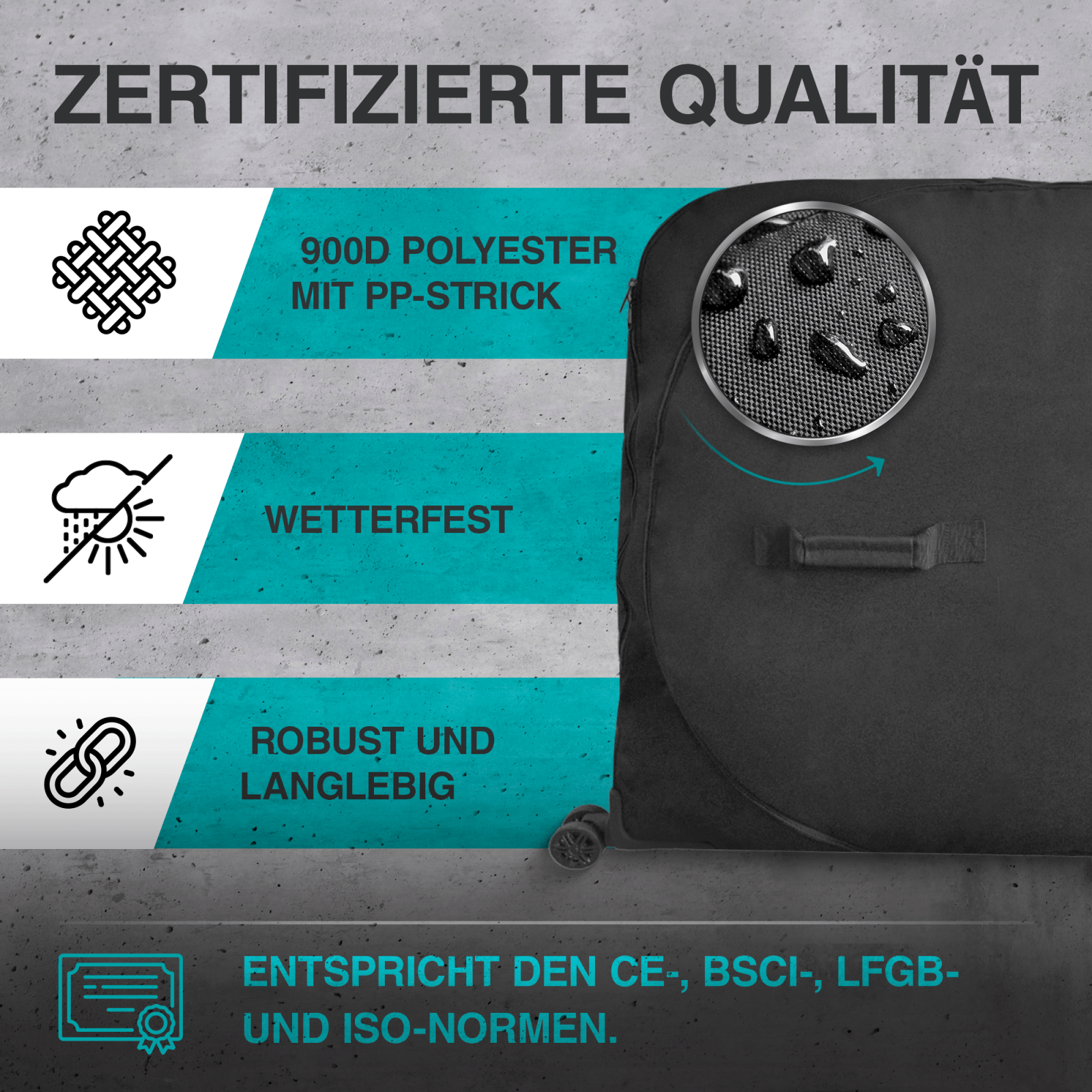 Wasserfest & robust: Gefertigt aus hochwertigem 900D-Polyester mit wasserabweisender PP-Beschichtung – ideal für jede Wetterlage.
