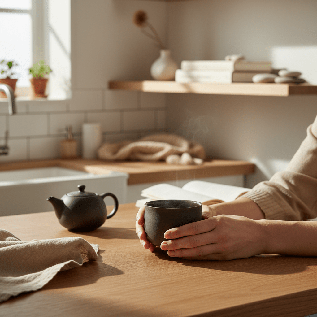 Die Ocha Teetasse vereint minimalistisches Design mit traditioneller Handwerkskunst. Jede Tasse wird in unserer Manufaktur in Mannheim von Hand auf der Töpferscheibe gefertigt und ist damit ein echtes Unikat. Mit ihrem sanft gerundeten Körper, dem filigranen Fuß und der edlen Farbgebung in grau-schwarzem Ton ist sie der perfekte Begleiter für deine täglichen Rituale – ob Matcha Tee, Kräutertee oder Kaffee.