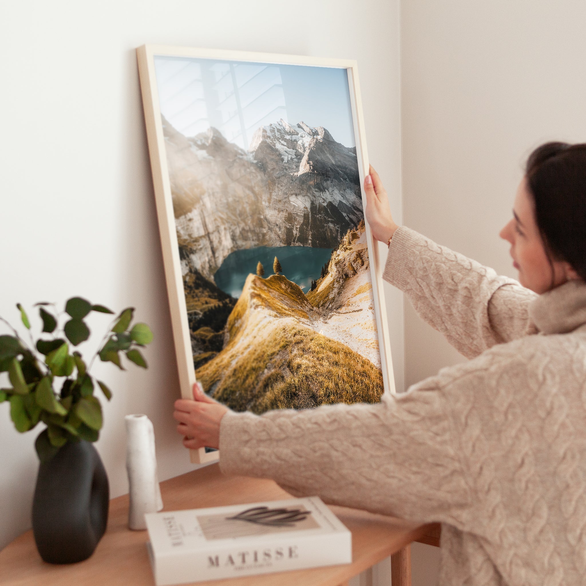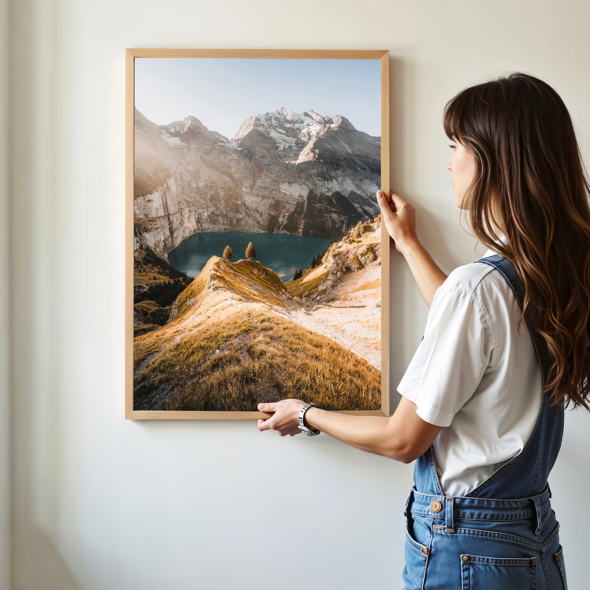 Golden light over Oeschinensee’s alpine meadows—bring the Swiss Alps home. Lesen Sie mehr