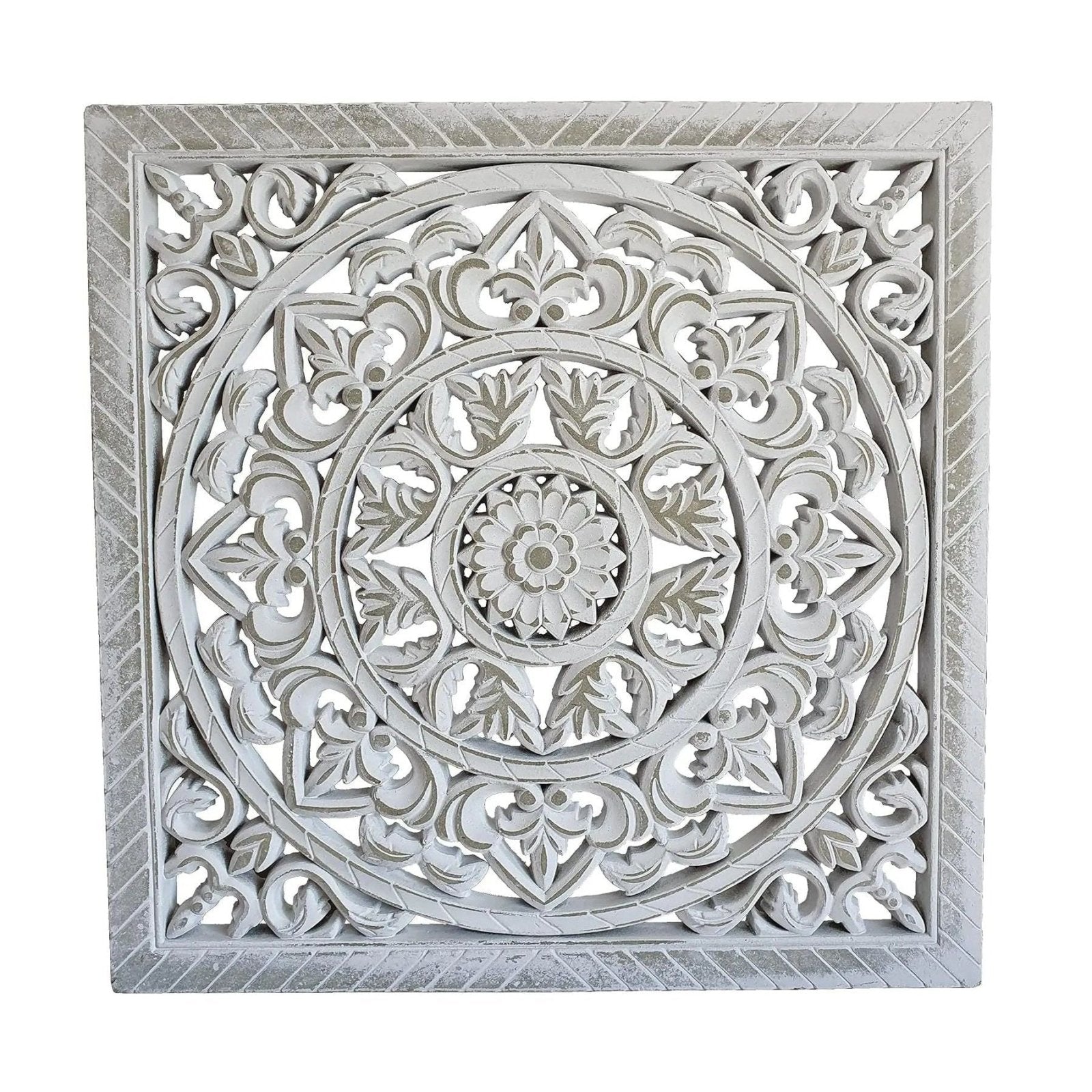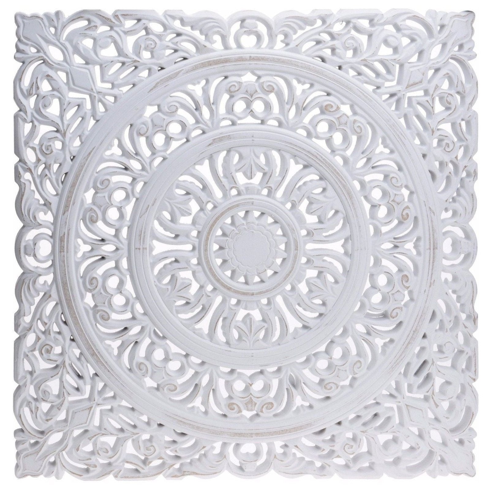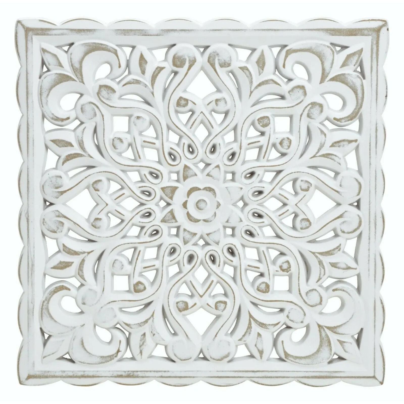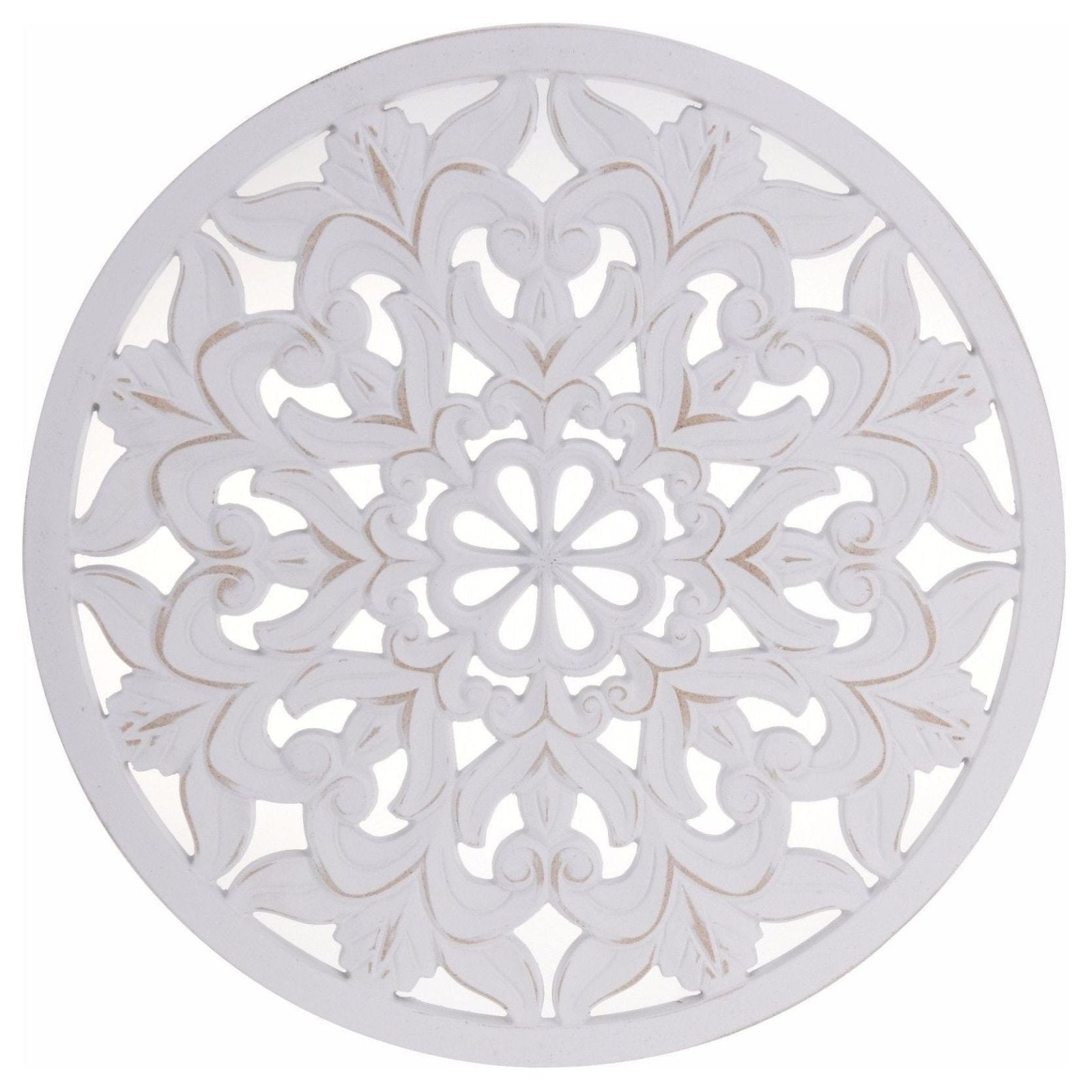 Ornament Holzbild Wandornament Holz shabby weiß Landhaus Dekoration Mandala Deko