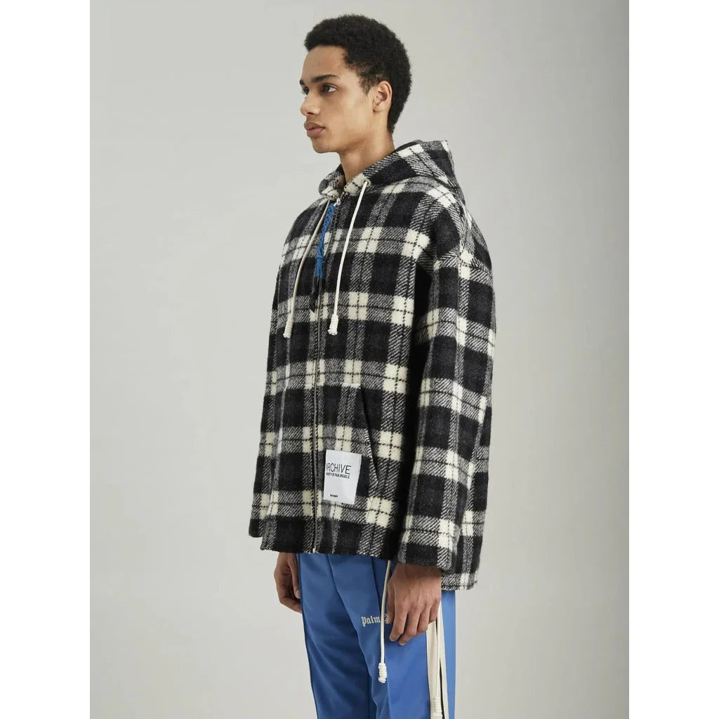 LONG SLEEVES HOODED JACKET WITH CHECKED PATTERN IN BEIGE AND BLACK ALL OVER. "ARCHIVE PROPERTY OF PALM ANGELS" PATCH IN... Lesen Sie mehr