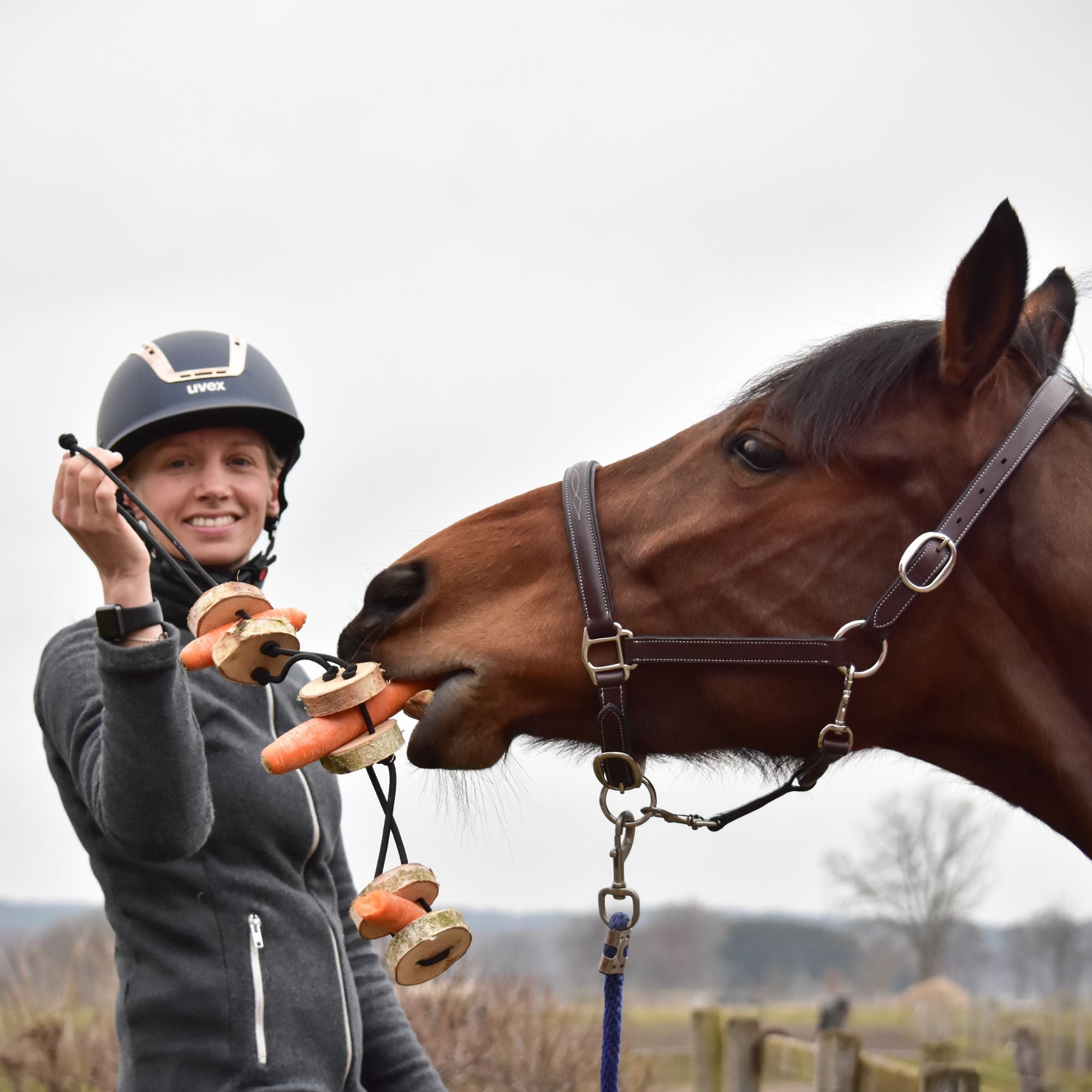 Anderes Spielzeug für Pferde landet schnell in der Tonne – der Möhren-Tarzan hält, was er verspricht: