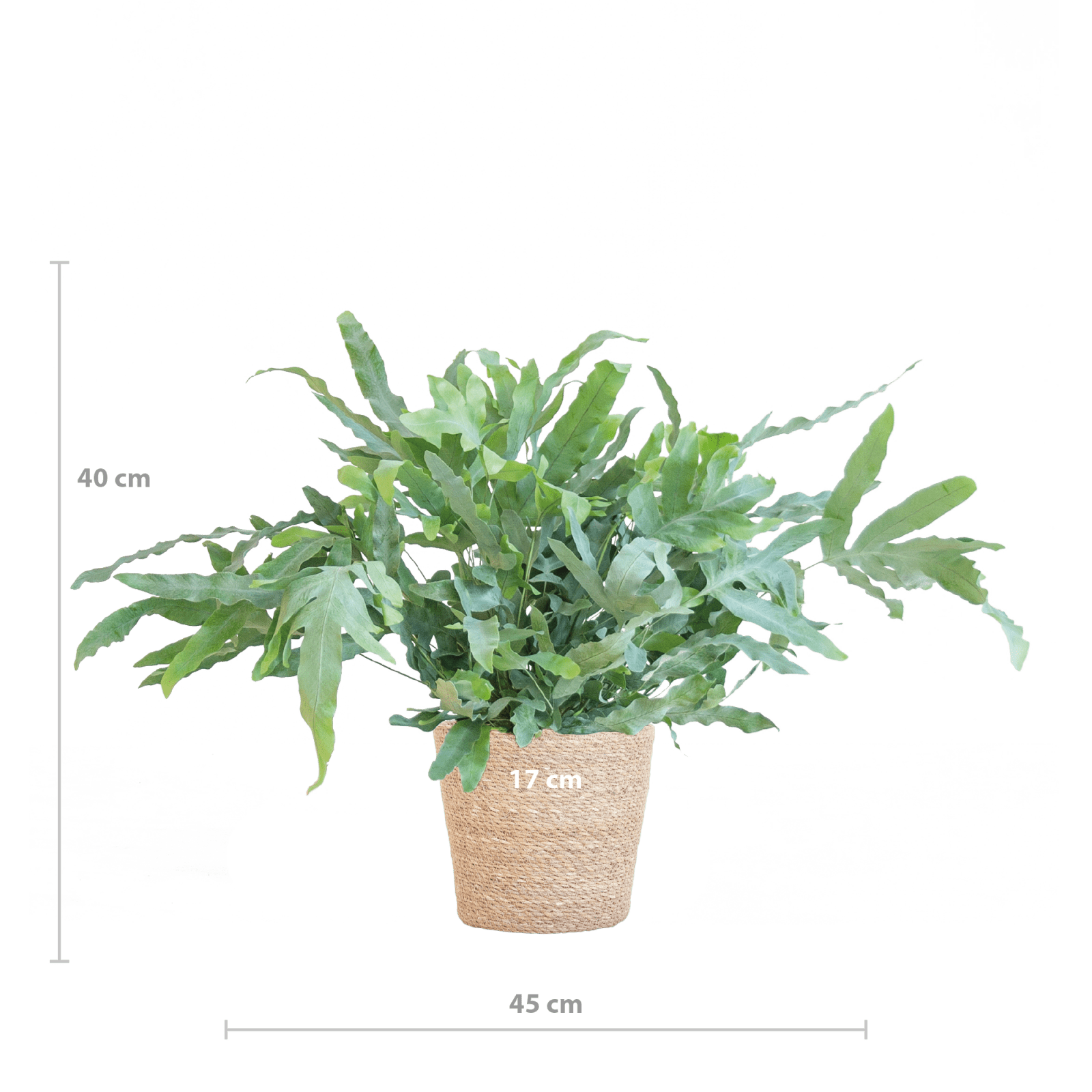 Ob auf Sideboards, Fensterbänken oder im Regal – mit dem Phlebodium Aureum ‘Blue Star’ im Korb Sofia natur setzen Sie stilvolle, nachhaltige Akzente in Ihrem Zuhause!