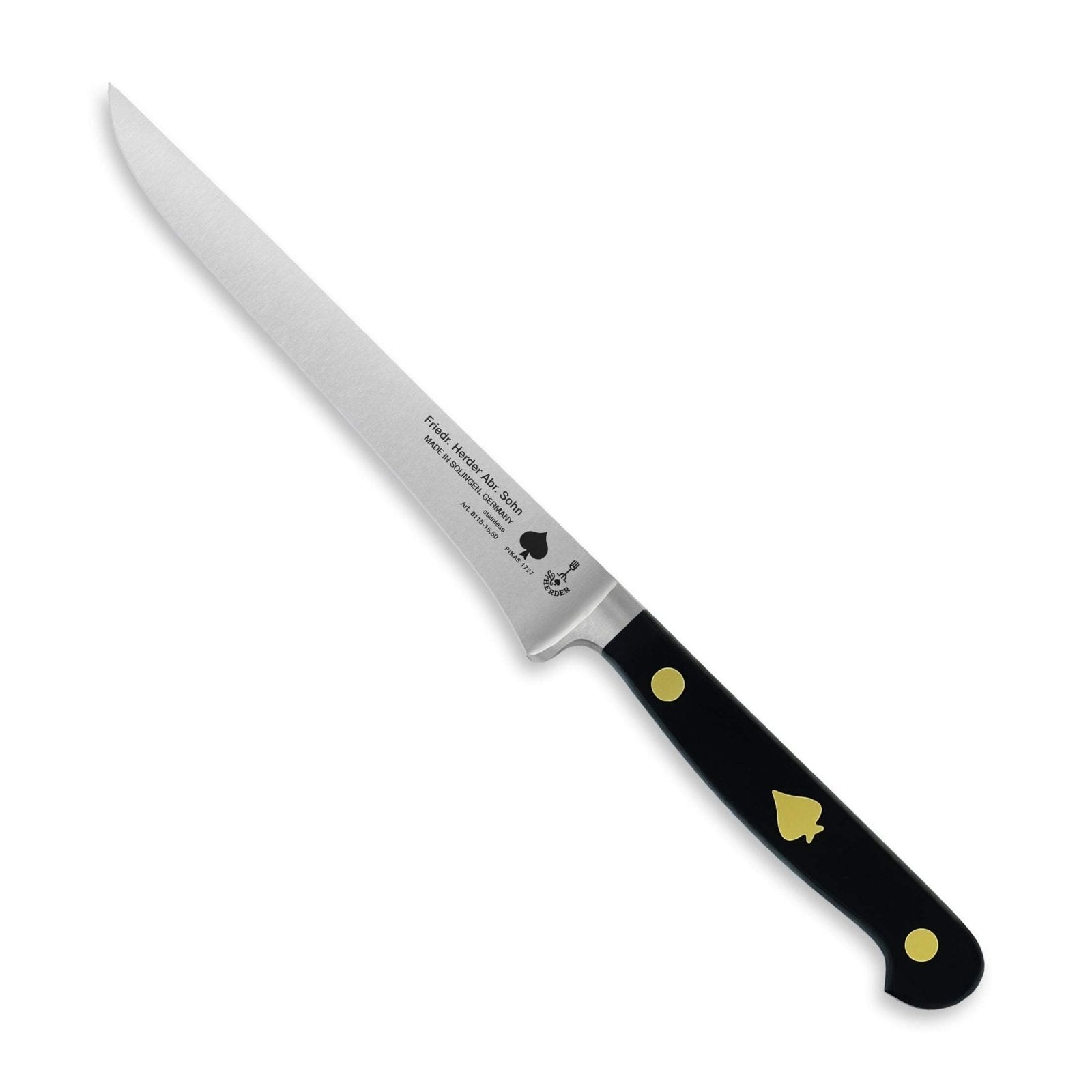 Das Ausbeinmesser ist ein unverzichtbares Werkzeug für die sorgfältige Verarbeitung und Vorbereitung von Fleisch. Mit seiner schmalen, spitzen und sehr stabilen Klinge ermöglicht es präzises Auslösen von Knochen, Entfernen von Sehnen und Fett sowie akkurates Schneiden von Fleischstücken. Dieses spezialisierte Messer bietet optimalen Komfort und Effizienz bei anspruchsvollen Fleischzubereitungsaufgaben.