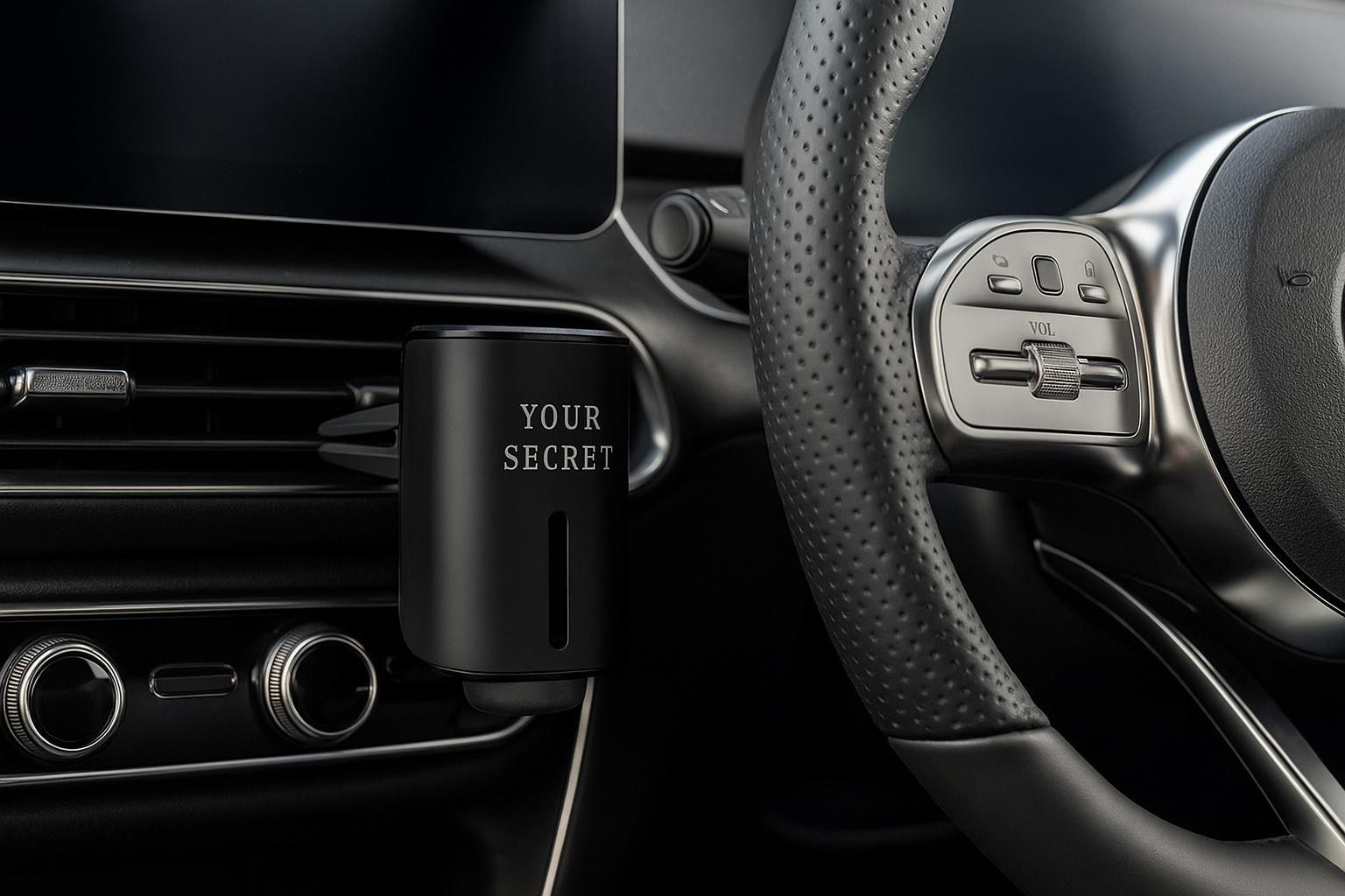 Bringen Sie Premium-Duft in den Innenraum – sauber, dezent und dauerhaft. Der YOUR SECRET Auto-Diffuser wird klassisch am Lüftungsschlitz befestigt und vernebelt Ihren Lieblingsduft als feinen Nebel. Metallische Optik, kompakte Bauform, auslaufsichere Nachfüllflasche: Das ist die schlanke, professionelle Lösung für frische Luft im Fahrzeug.