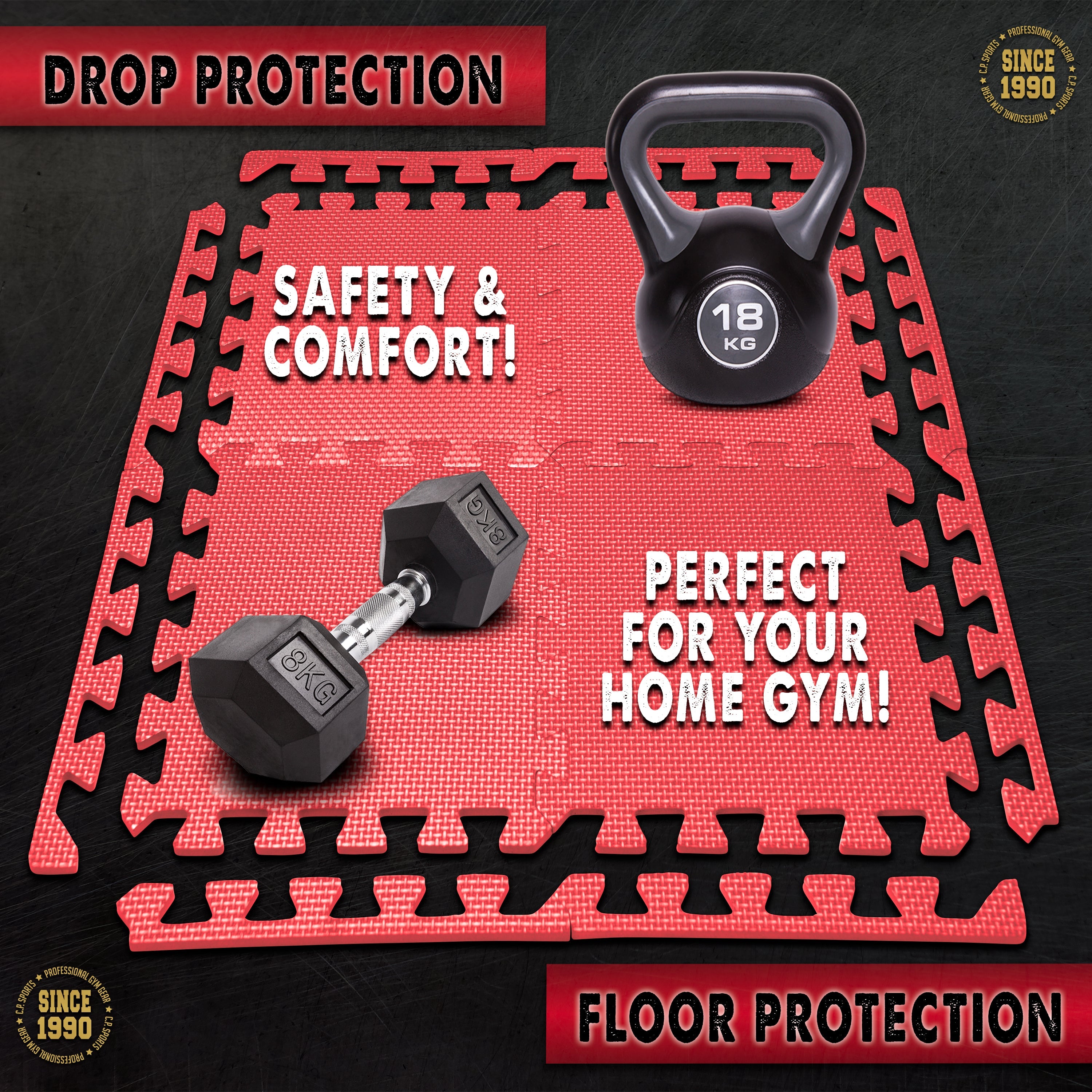 C.P. Sports Markenqualität bieten wir als Deutschlands größter Hersteller für erstklassiges Kraftsport-, Bodybuilding- und Fitness-Equipment. Wesentliche Erkenntnisse aus dem Profisport fließen direkt in unsere Produkte – wie zum Beispiel bei den Puzzlematten, die jeden Raum umgehend in ein Home Gym, einen Hobbyraum oder in ein Spielzimmer verwandeln, wie ein weicher Teppich mit besonders hohem Fallschutz und Bodenschutz!