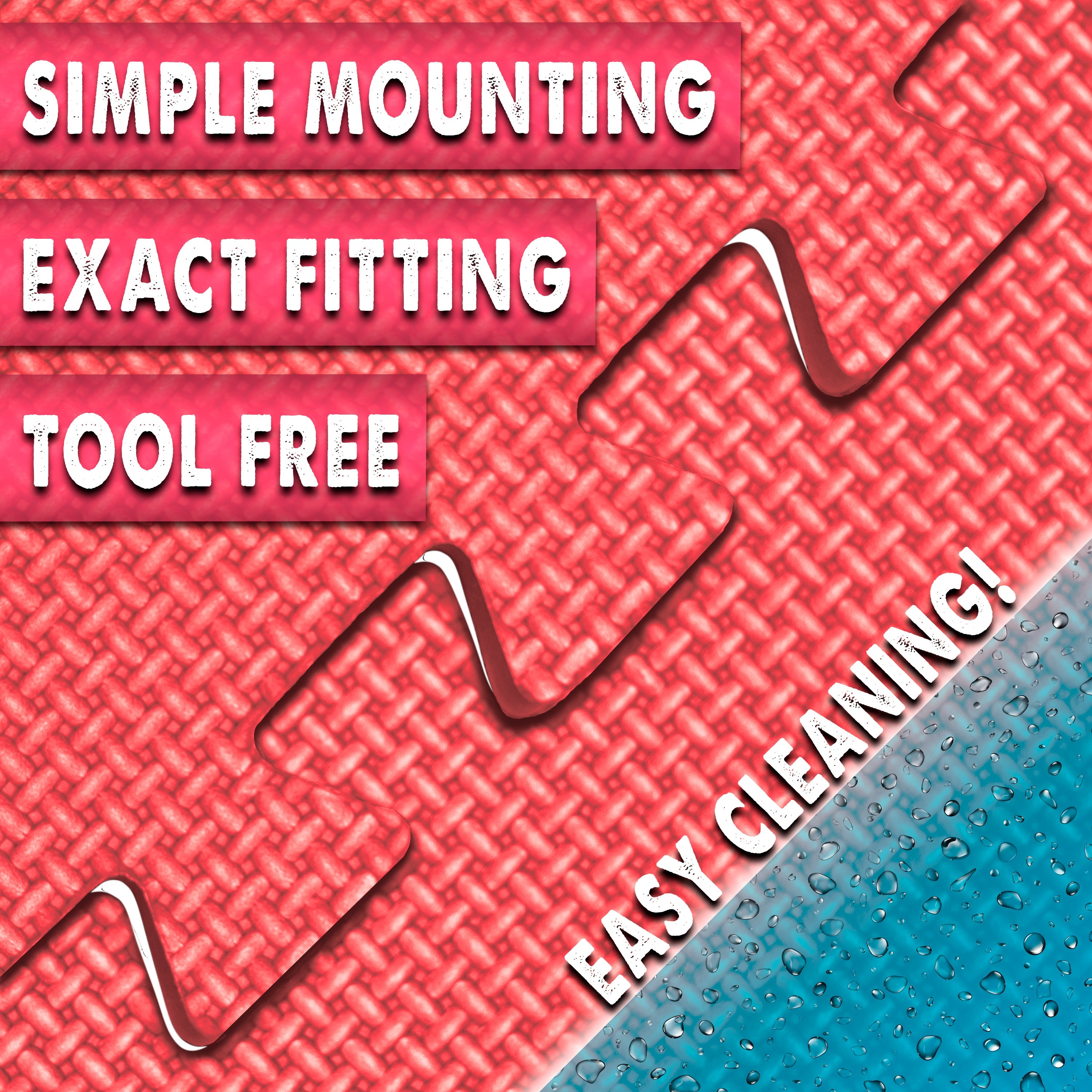 - nahtlose Passform beim Verbinden und Verlegen der Mattenteile