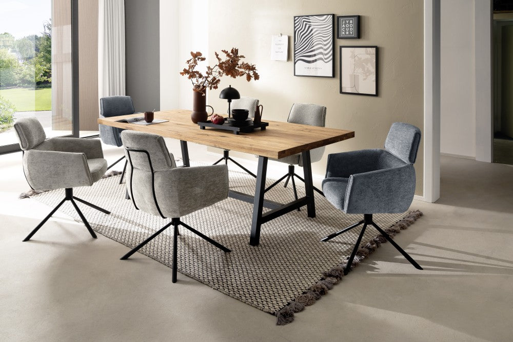 Chenille-Optik 100% Polyester Mit beweglichem Rücken Taschenfederkern - Luxus Komfortsitz Gestell: rund, konisch / schwarz matt lackiert oder Edelstahl gebürstet... Lesen Sie mehr