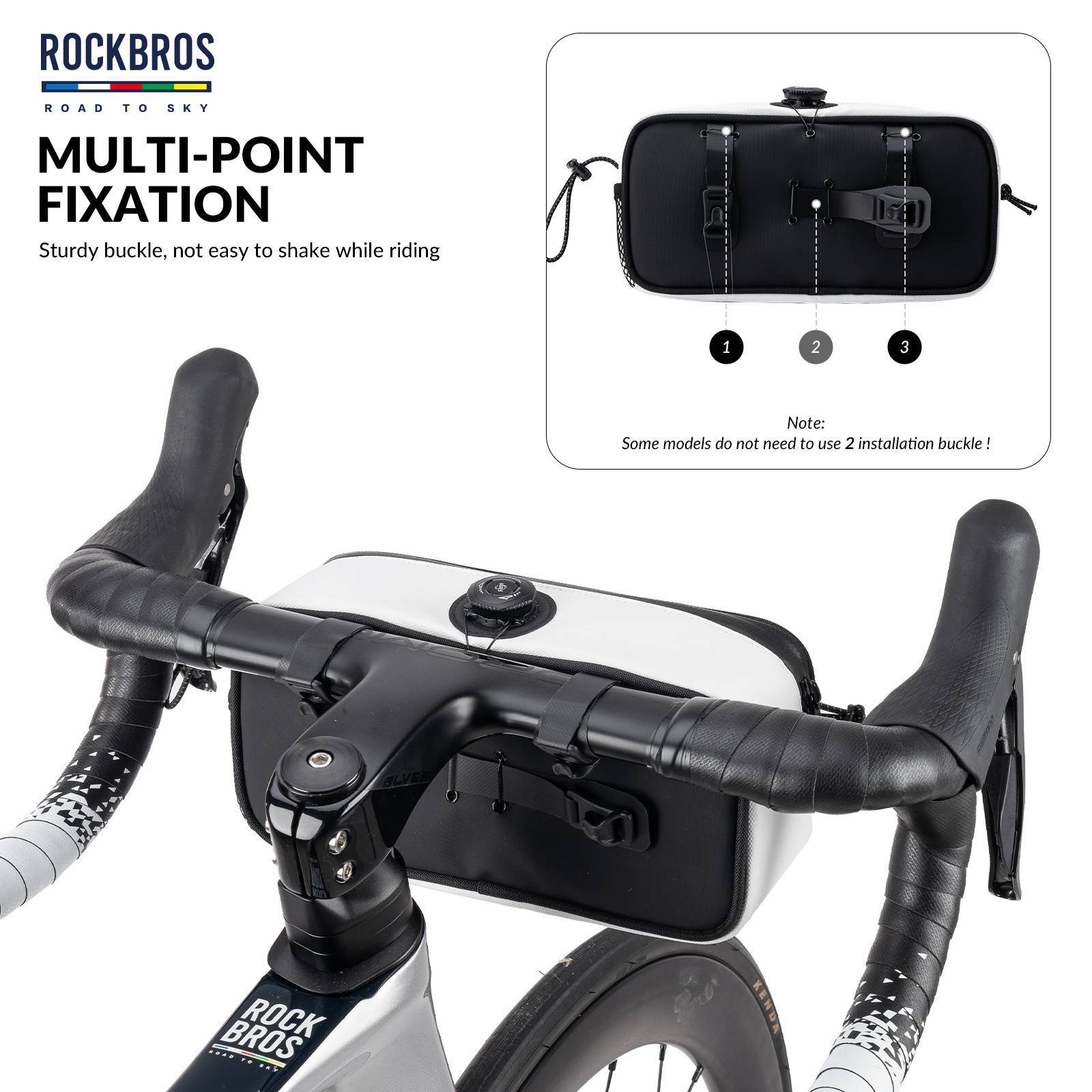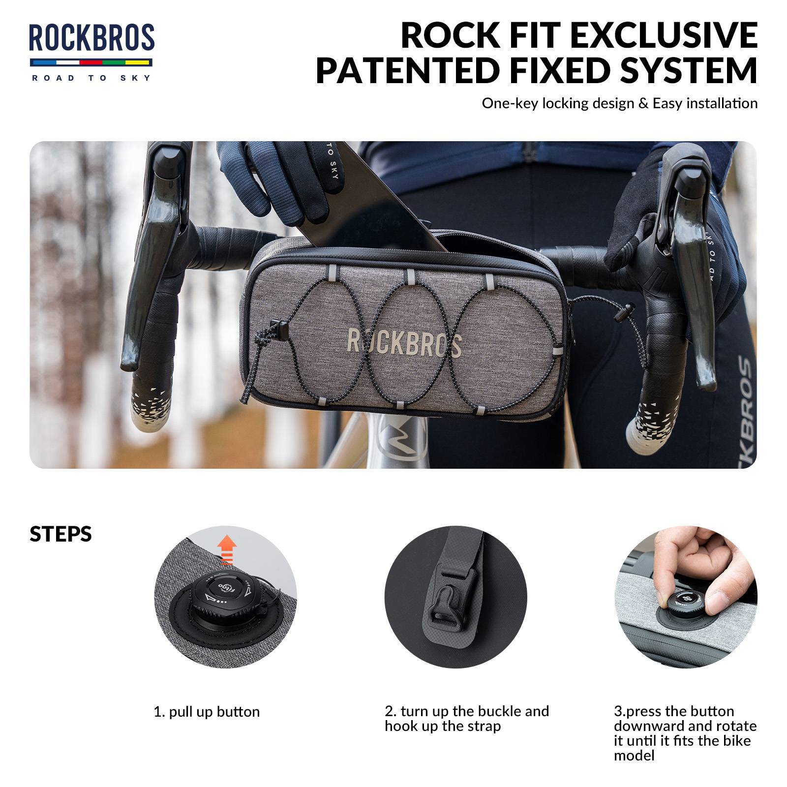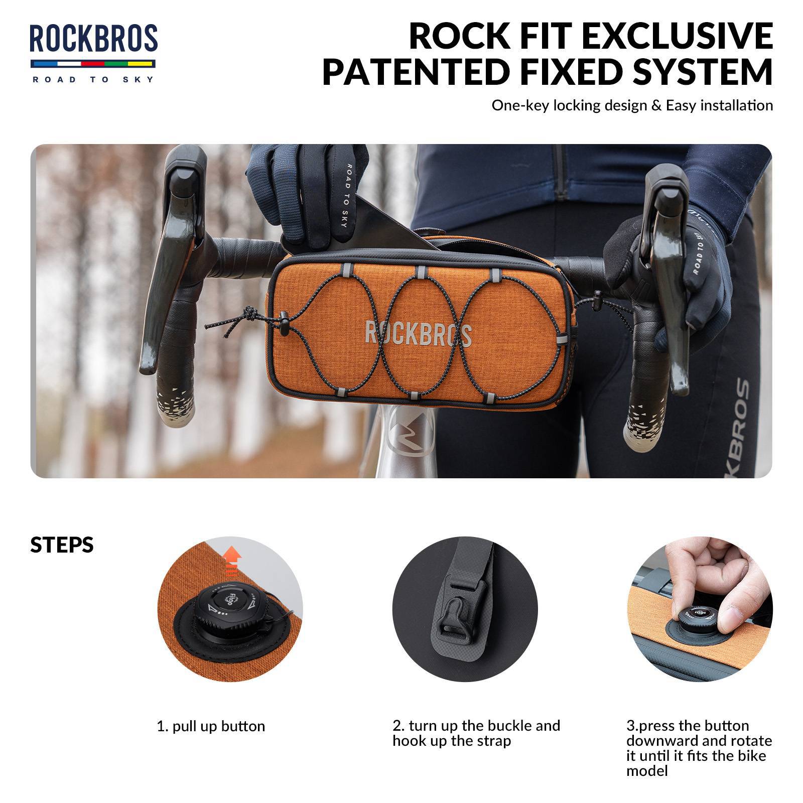 Innovatives Design: Dank des selbst entwickelten ROCK FIT Befestigungssystems kann die ROCKKBROS Lenkertasche durch einfaches Drehen eines Knopfes arretiert werden.... Lesen Sie mehr