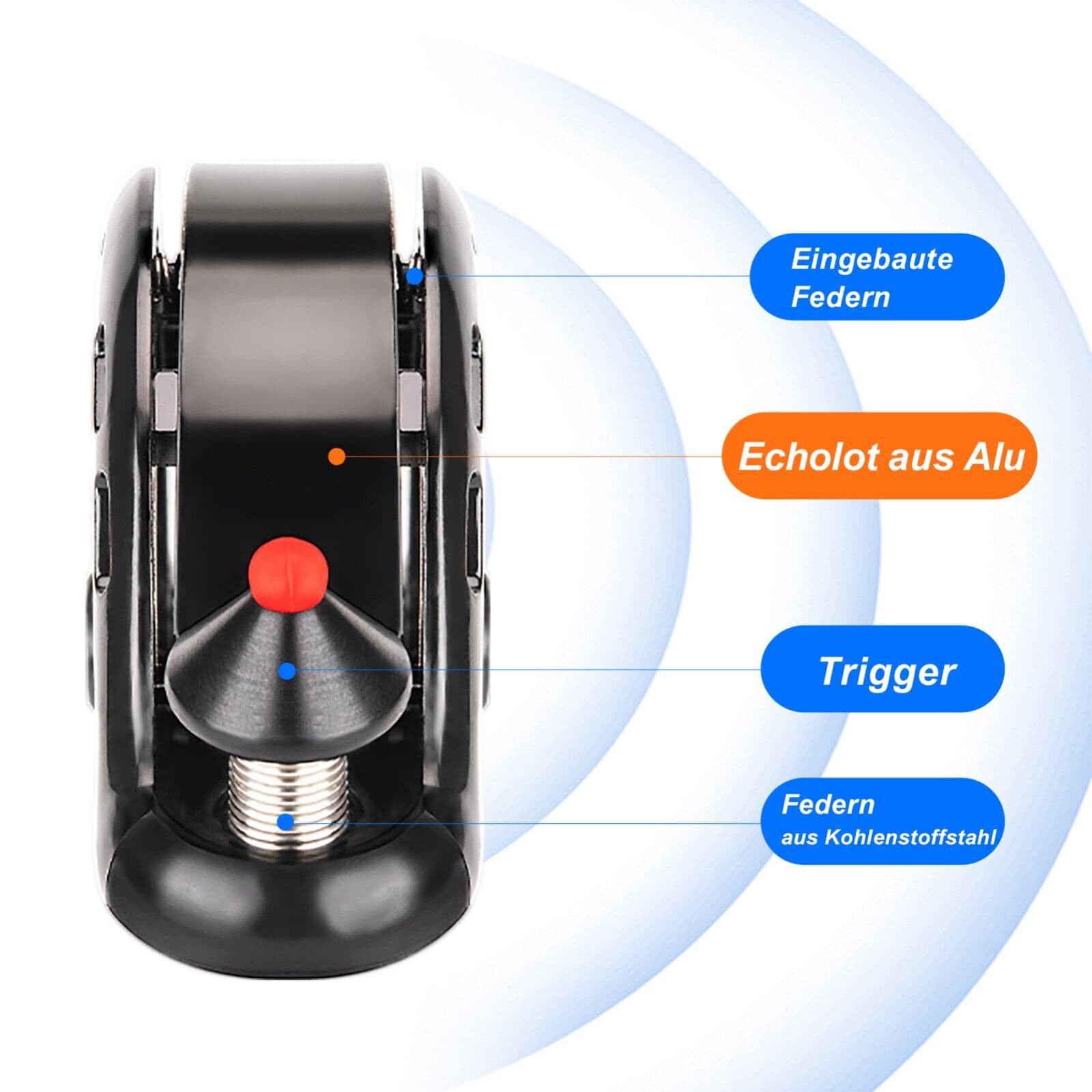 100 dB: Der knackige und laute Weckgong kann ein hohes Dezibel von 100 dB erreichen, und mit einem einfachen Schnippen werden die Menschen um Sie herum sofort auf Ihre Anwesenheit aufmerksam, und das Heckgeräusch ist lang, nicht hart, was Sicherheit auf Ihre Pendelfahrt bringt.