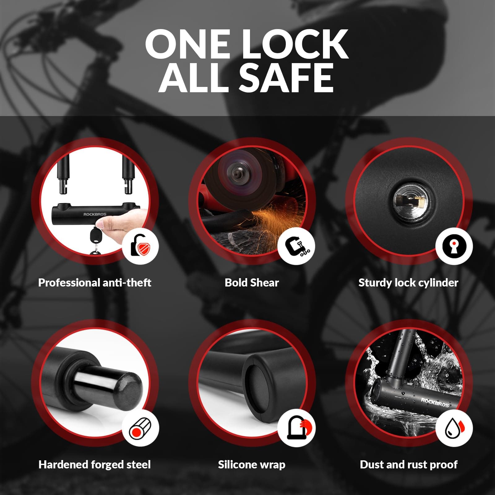 ROCKBROS Fahrrad Bügelschloss für Fahrräder & Motorräder aus legiertem