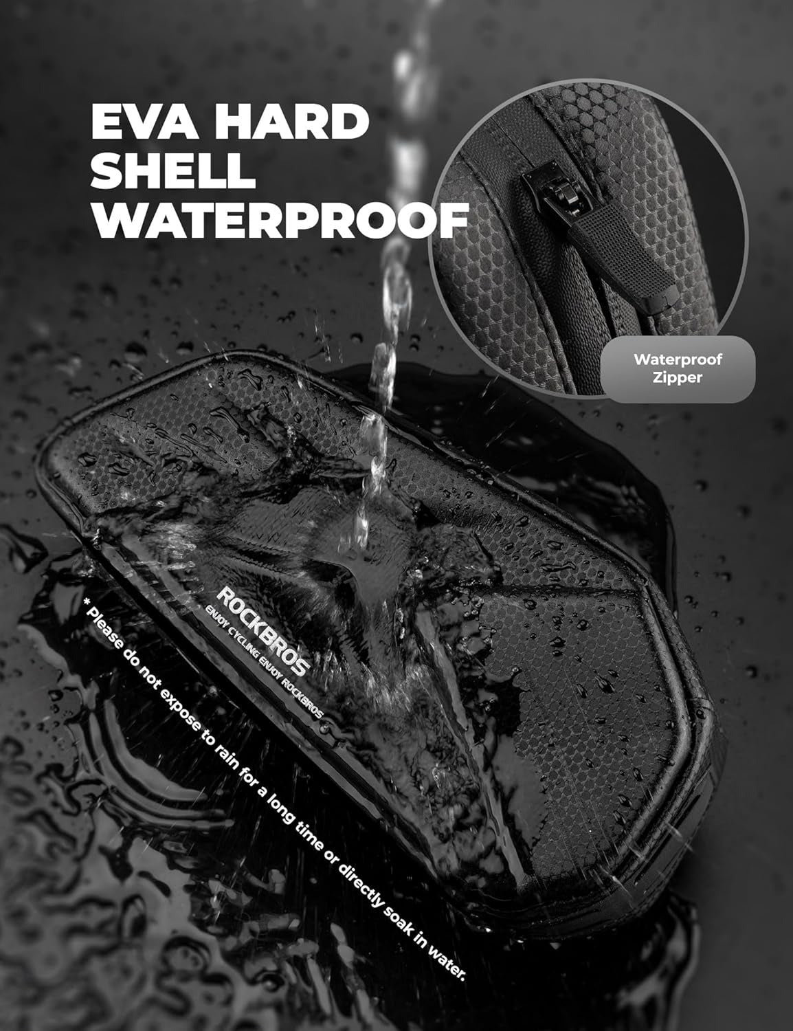 Der ROCKBROS Hard Shell Fahrradlenkertasche besteht aus hochwertigem PU und EVA, die für ihre wasserabweisenden und schnittfesten Eigenschaften bekannt sind. So bleiben Ihre wichtigsten Utensilien auch bei schwierigen Wetterbedingungen trocken und geschützt