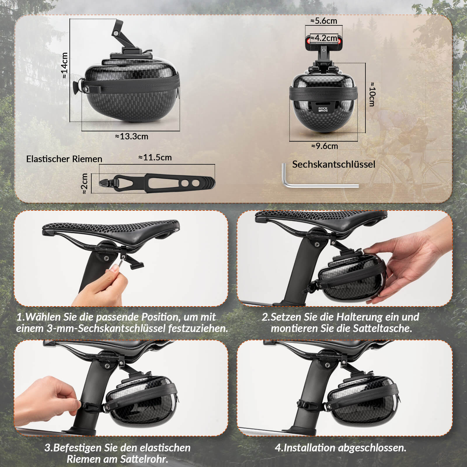 ROCKBROS robuste Fahrradsatteltasche mit Hartschalenkonstruktion, spritzwassergeschützt und leicht. Praktische Netztaschen für Ordnung, kompatibel mit verschiedenen Sattelstützen. Perfekt für tägliche Fahrten und Nachtfahrten.