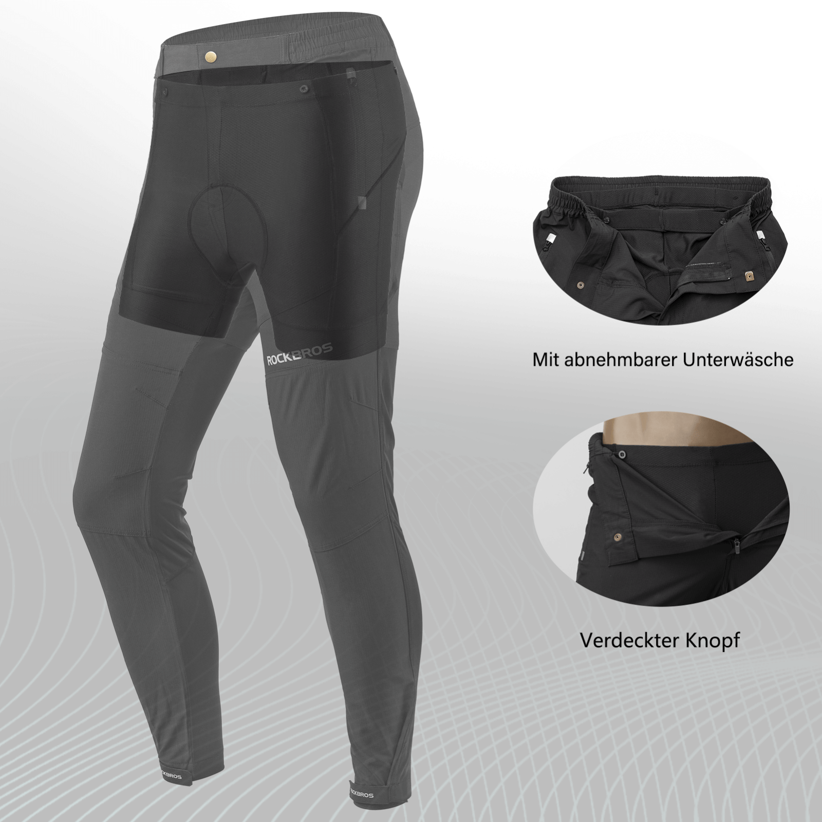 ROCKBROS Herren Radhose mit abnehmbarer gepolsterter
