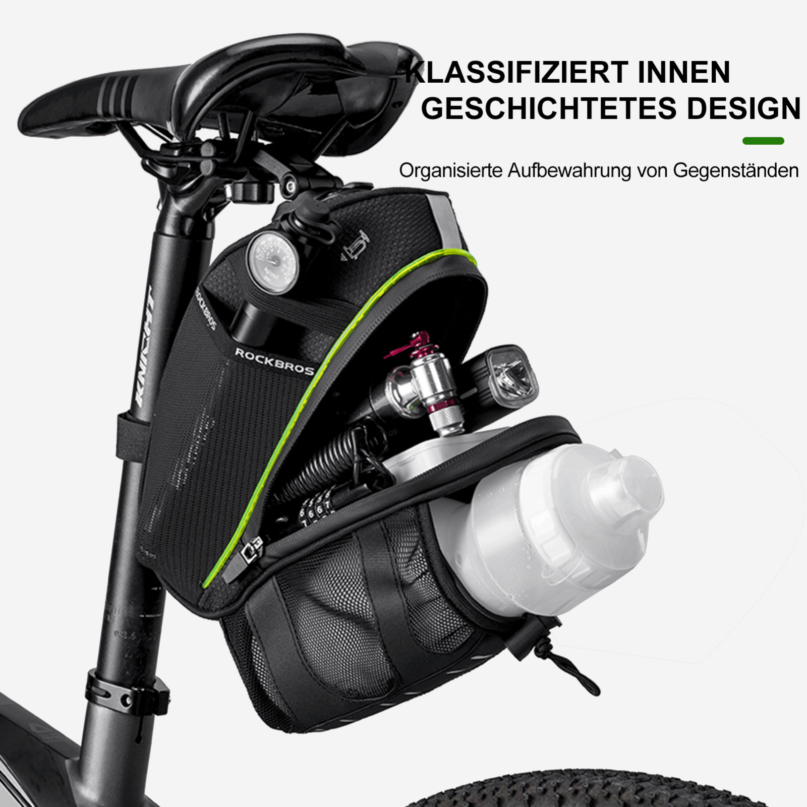 ROCKBROS Kratzfest Fahrrad Satteltasche mit Flaschenhalter 1,5L