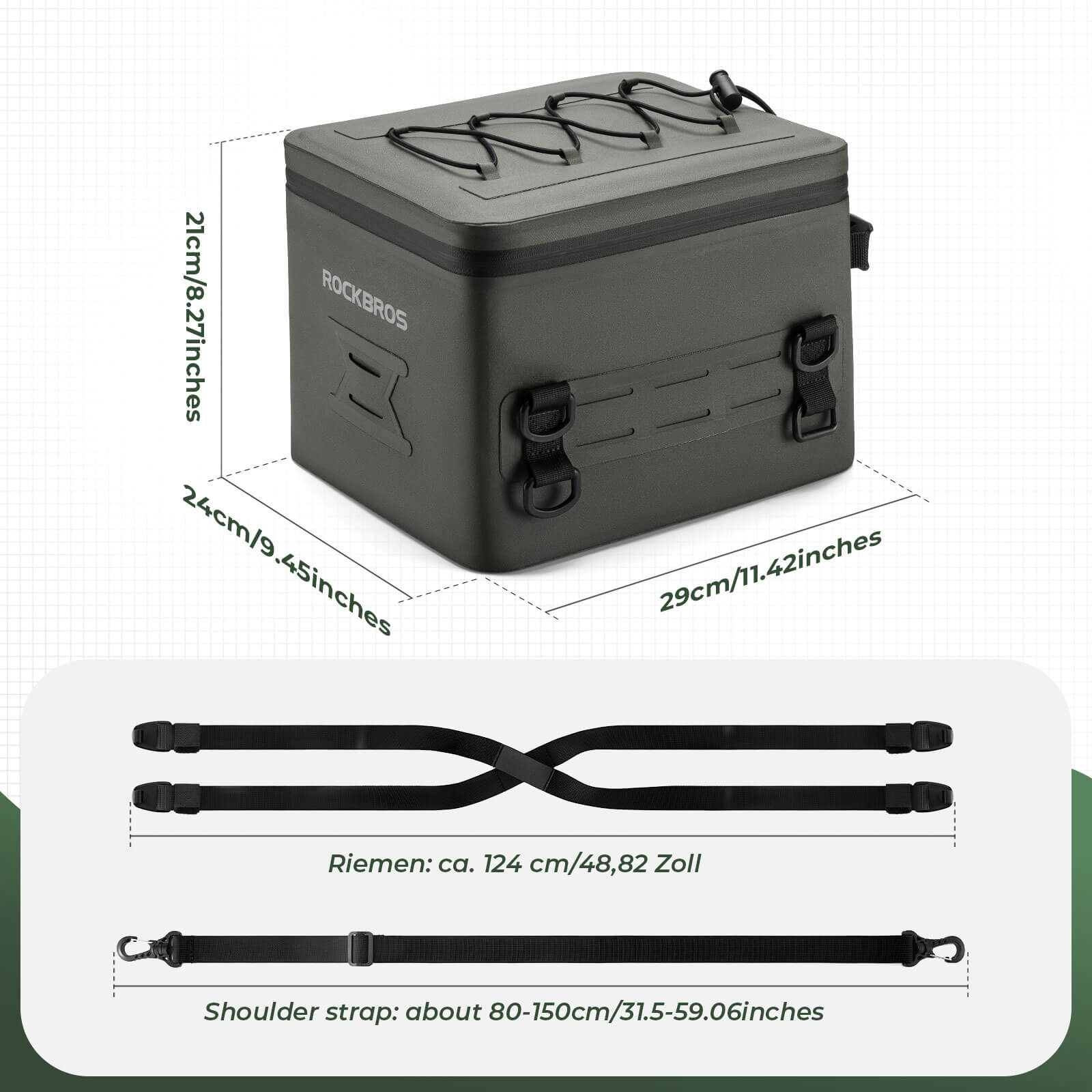 Wasserdichte ROCKBROS Motorradhecktasche mit 13L Fassungsvermögen. Robustes, reißfestes Material, leicht zu reinigen, erweiterbar und ideal für lange Fahrten. Inklusive Schultergurt für bequemes Tragen.