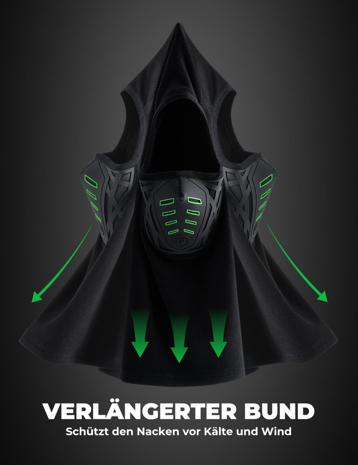 Spezialgewebe blockiert Windböen und Feinstaub – ideal für Fahrrad-, Motorrad- oder Ski-Abfahrten bei starkem Wind oder in staubigen Umgebungen. Schützt zuverlässig vor Witterungseinflüssen.
