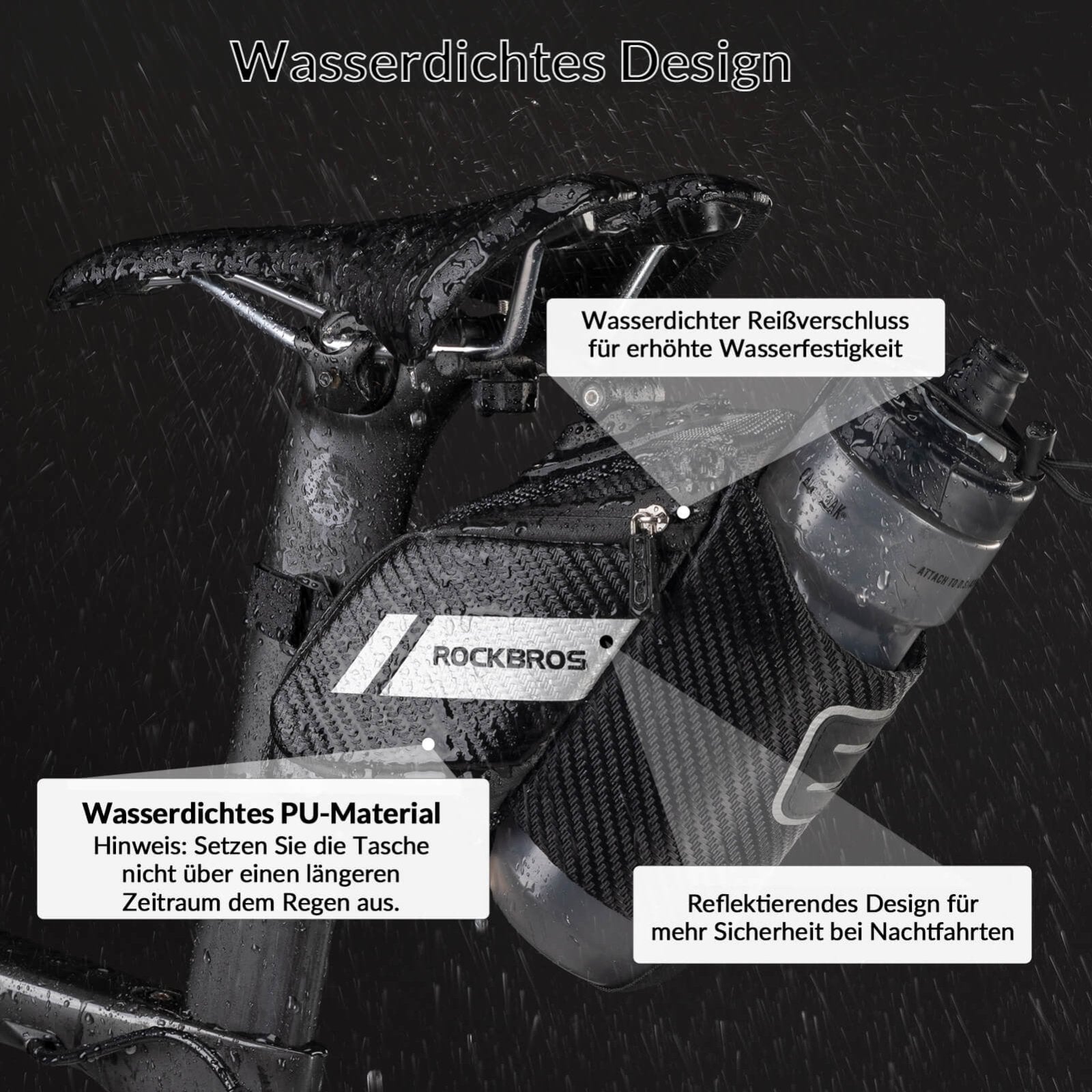 ROCKBROS Satteltasche Fahrradsitz Tasche mit Flaschenhalter Schwarz 1L