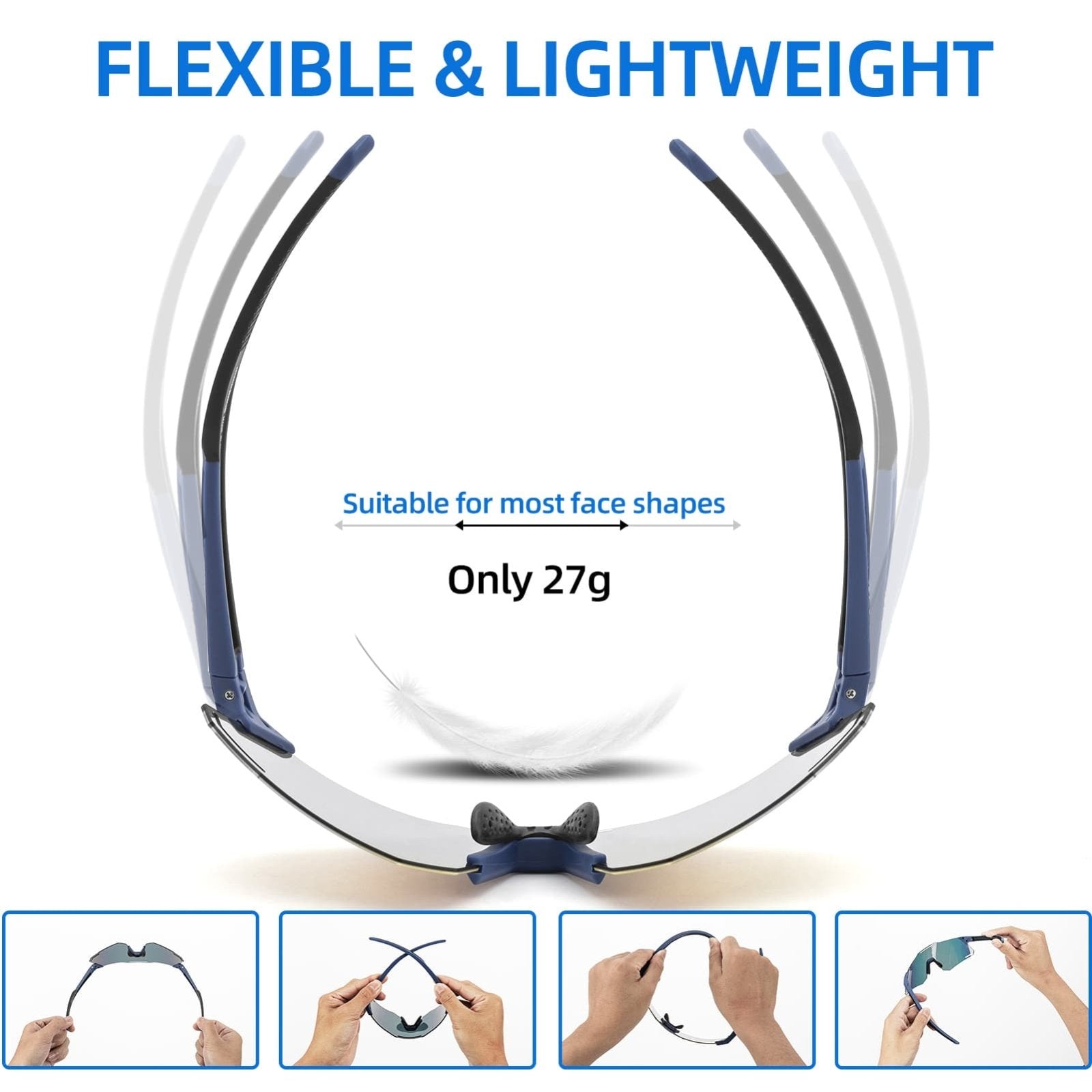 【UV400 Schutz】Diese Radsport-Sonnenbrille hat eine getönte Spiegelbeschichtung mit 100% UV400 Schutz. 【Rahmenloses Design】Die breiten Gläser der ROCKBROS Sportbrille bieten ein... Lesen Sie mehr