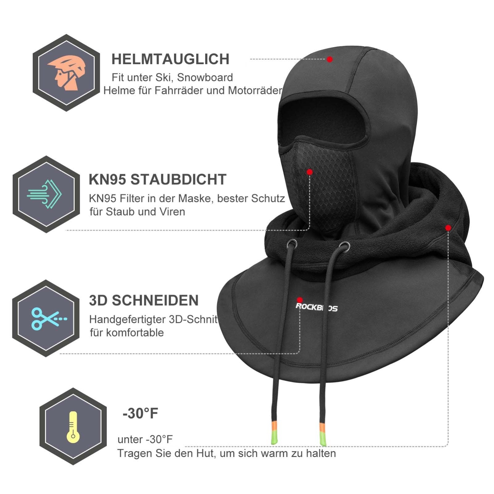 ROCKBROS Sturmhaube Winddicht Fahrrad Full Face Gesichtshaube für Radfahren Skifahren