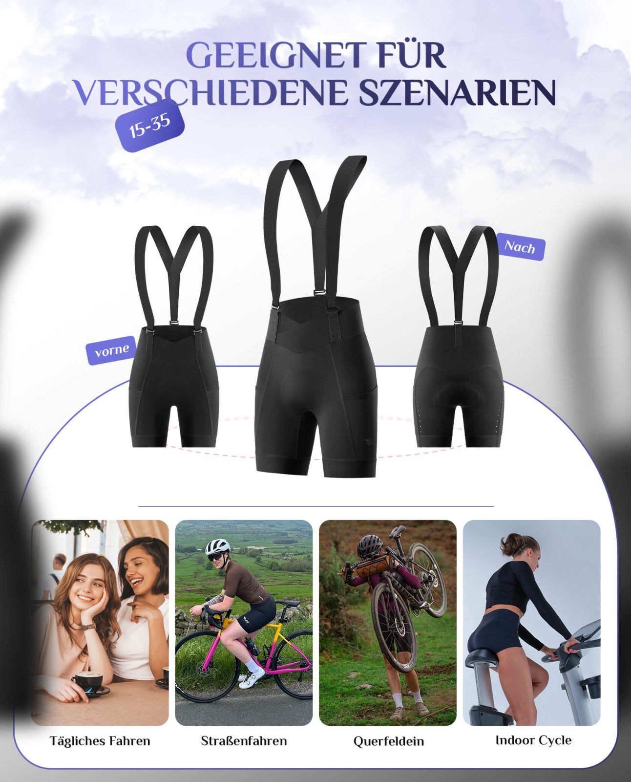 ROCKBROS TVI Fahrradhose Damen mit abnehmbaren Kurz Radsport Trägerhose