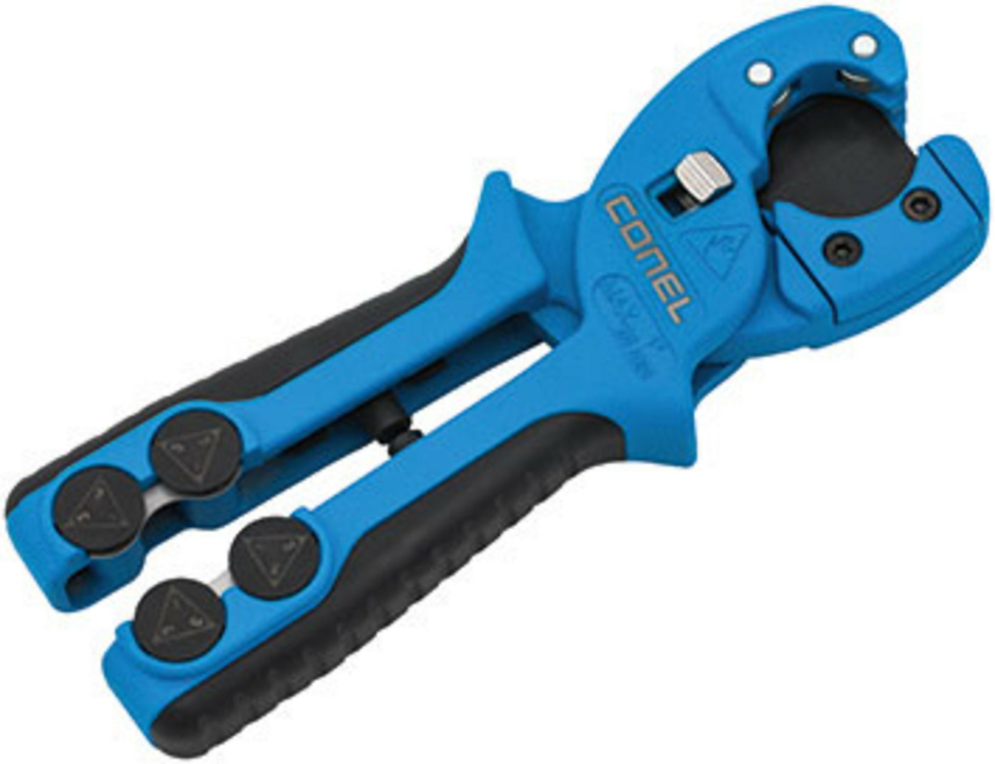 Die CONEL Rohrschere für Kunststoffrohre bis 26 mm Durchmesser ist das perfekte Werkzeug für saubere, präzise Schnitte bei Kunststoff-, PE-, PEX- und Wellrohren.