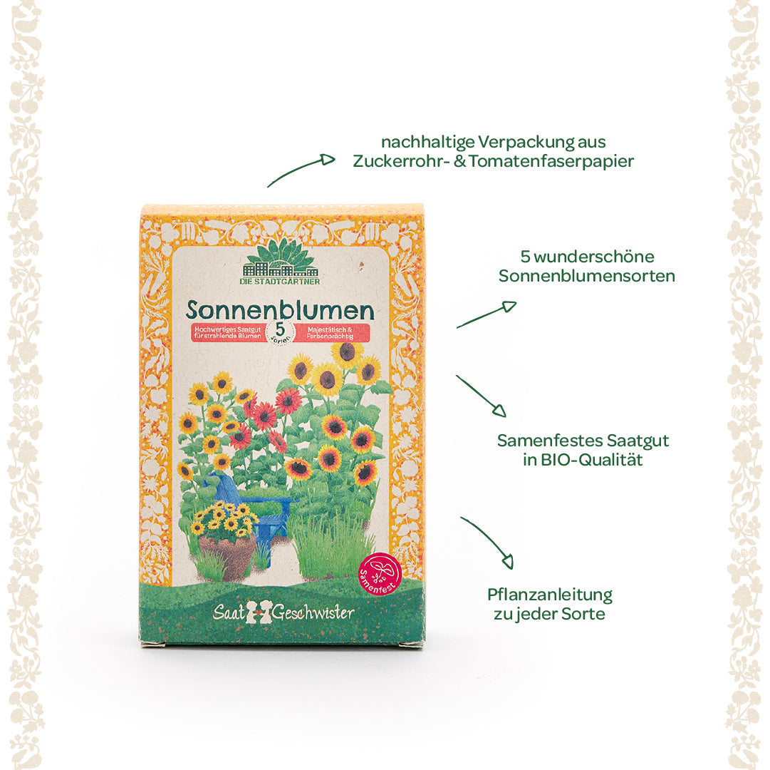 VIELSEITIGES SAMENFESTES SAATGUT-SET FÜR SONNENBLUMEN: Das Set enthält Saatgut für 5 verschiedenen Sonnenblumenarten. Es bringt sonnige Farben und fröhliche Blüten... Lesen Sie mehr