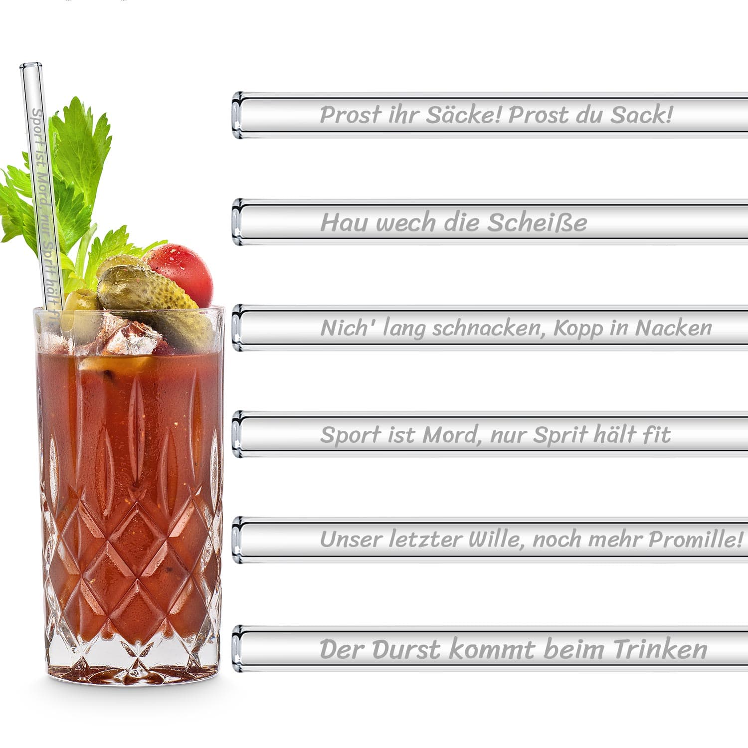 Sauf Sprüche Edition 6 gravierte Glasstrohhalme Trinksprüche Trinkspiele