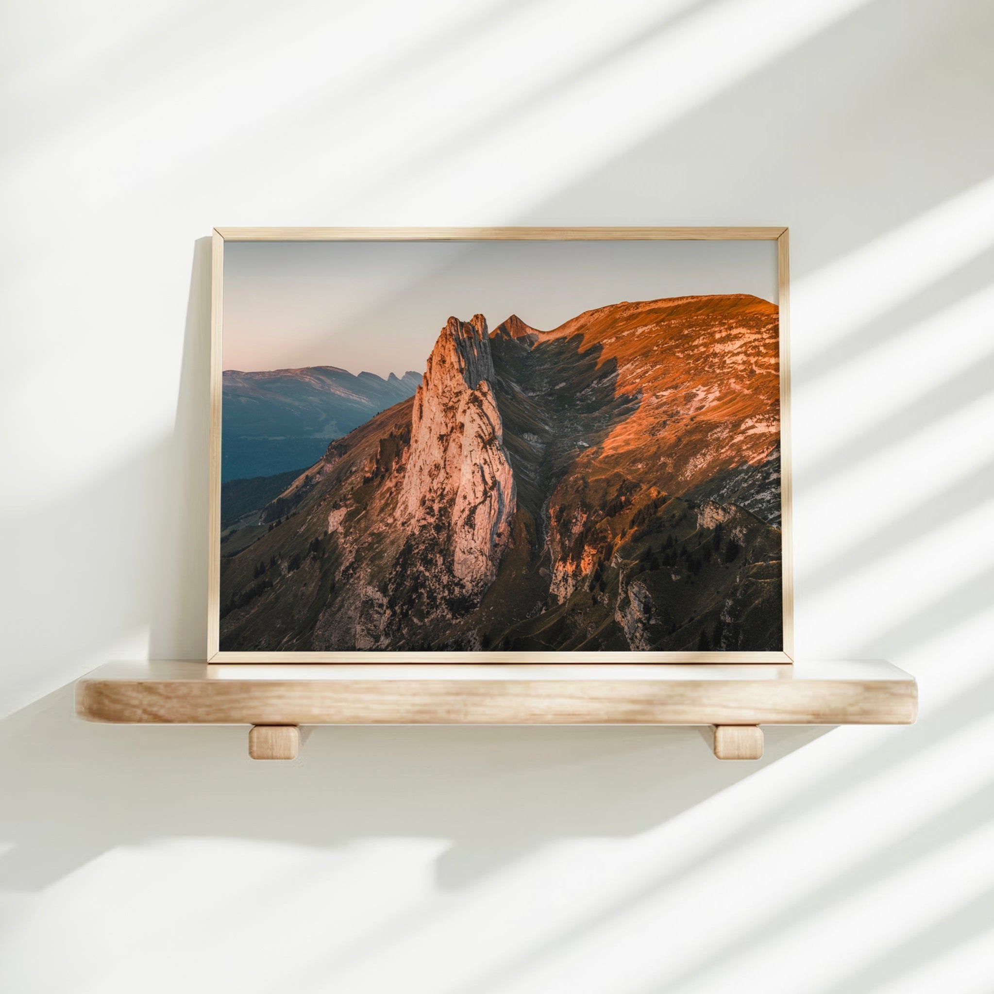 Golden light touches the jagged peaks of Saxer Lücke, a striking Swiss Alpine scene for your walls. Lesen Sie mehr