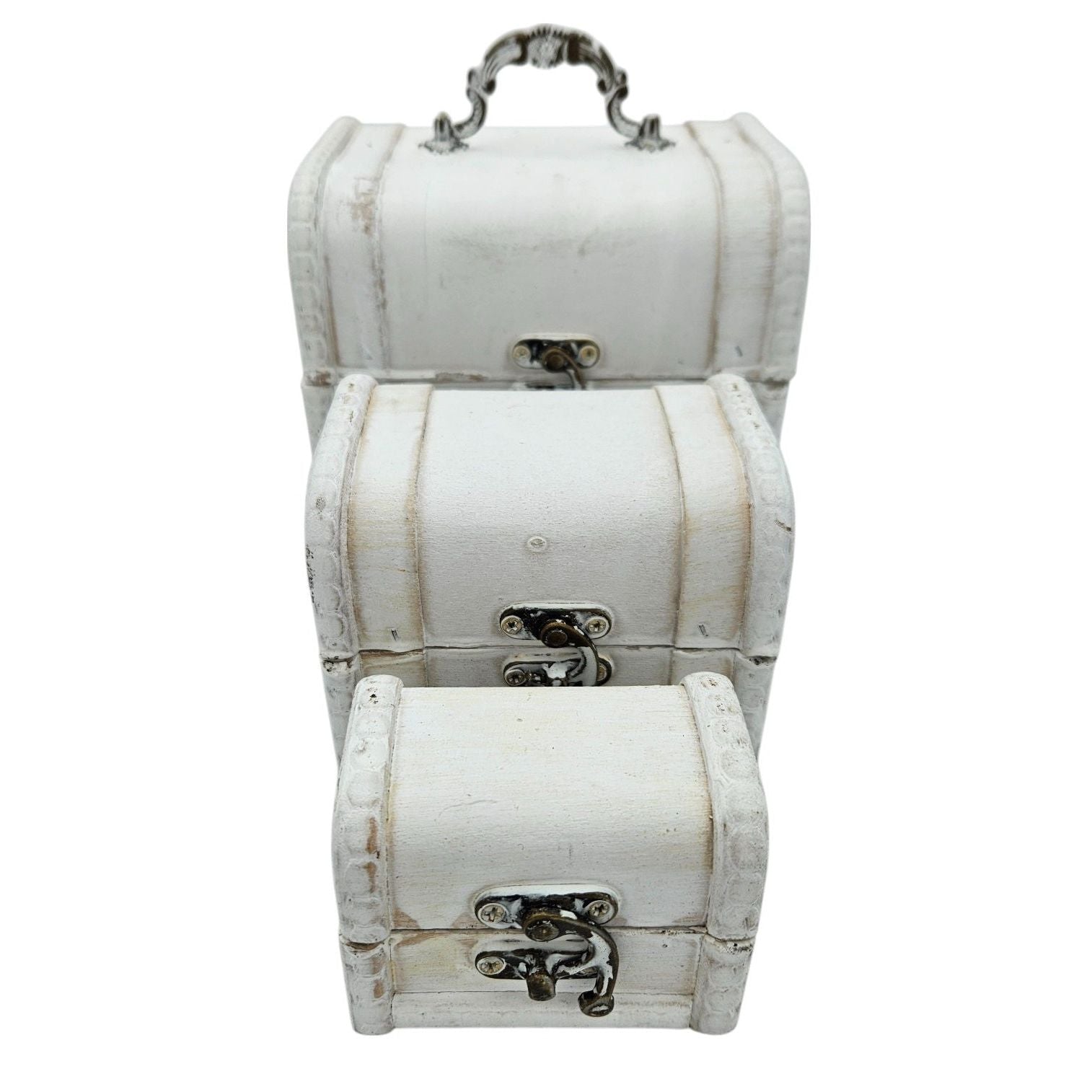 Unser Truhen-Set aus Holz bietet nicht nur eine attraktive Optik, sondern schützt Ihre kleinen Accessoires vor Staub. Ideal für Schmuck, Schlüssel oder kleine Erinnerungsstücke – die Truhen sorgen für Ordnung und setzen dabei dekorative Akzente.