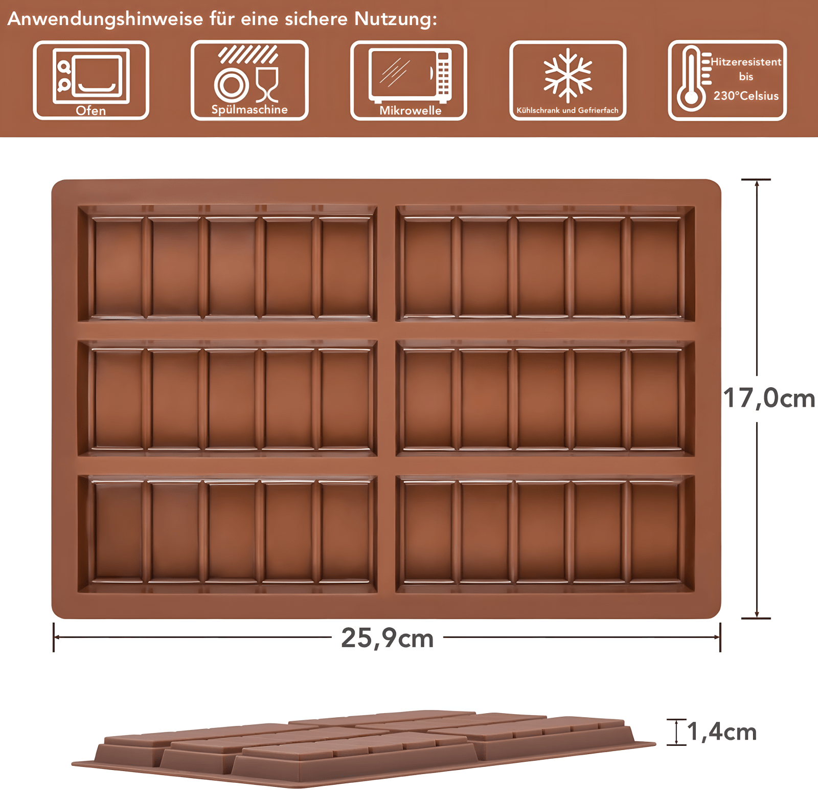 LEBENSMITTELFREUNDLICHE SCHOKOLADENFORM - Aus 100% lebensmittelfreundlichem Silikon, LFGB-zertfiziert, BPA-frei, PFAS-frei, ungiftig, umweltfreundlich, flexibel, wiederverwendbar und langlebig. Nachhaltiges Zubereiten für Groß... Lesen Sie mehr