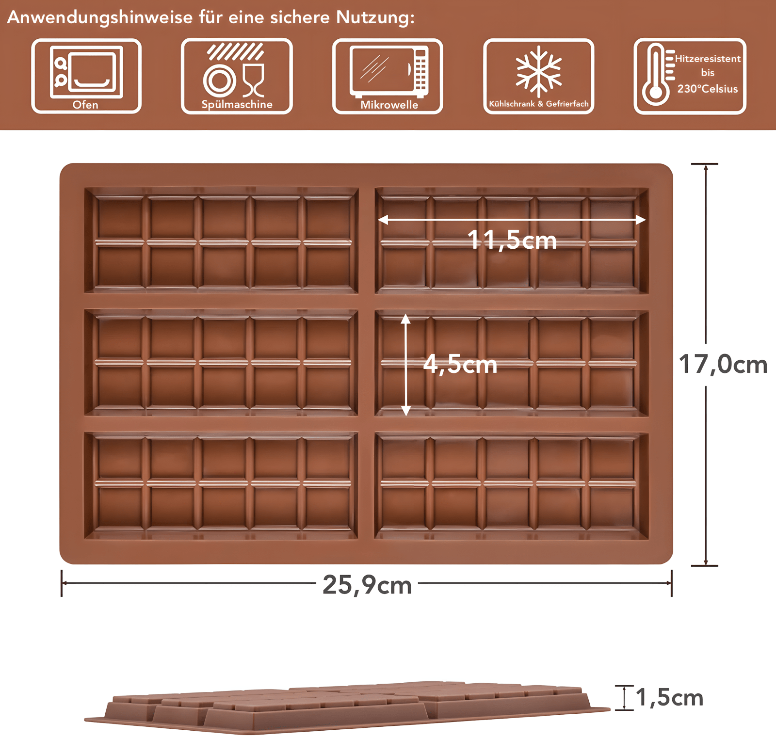 LEBENSMITTELFREUNDLICHE SCHOKOLADENFORM - Aus 100% lebensmittelfreundlichem Silikon, LFGB-zertfiziert, BPA-frei, PFAS-frei, ungiftig, umweltfreundlich, flexibel, wiederverwendbar und langlebig. Nachhaltiges Zubereiten für Groß... Lesen Sie mehr