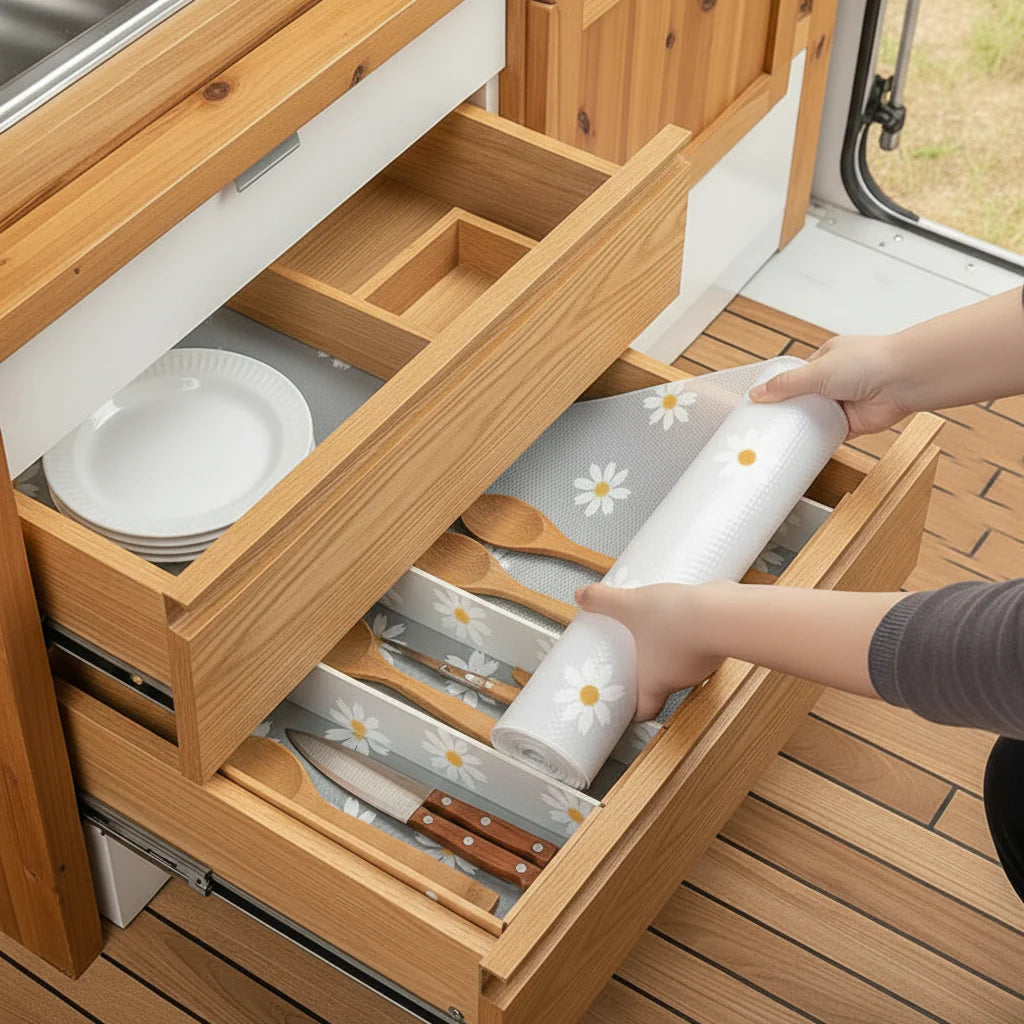 🌼 Schubladenmatte mit Kamelienmuster – 30×100 cm | Zuschneidbar & vielseitig einsetzbar 🏠 Halte deine Schubladen, Regale und Schränke sauber... Lesen Sie mehr