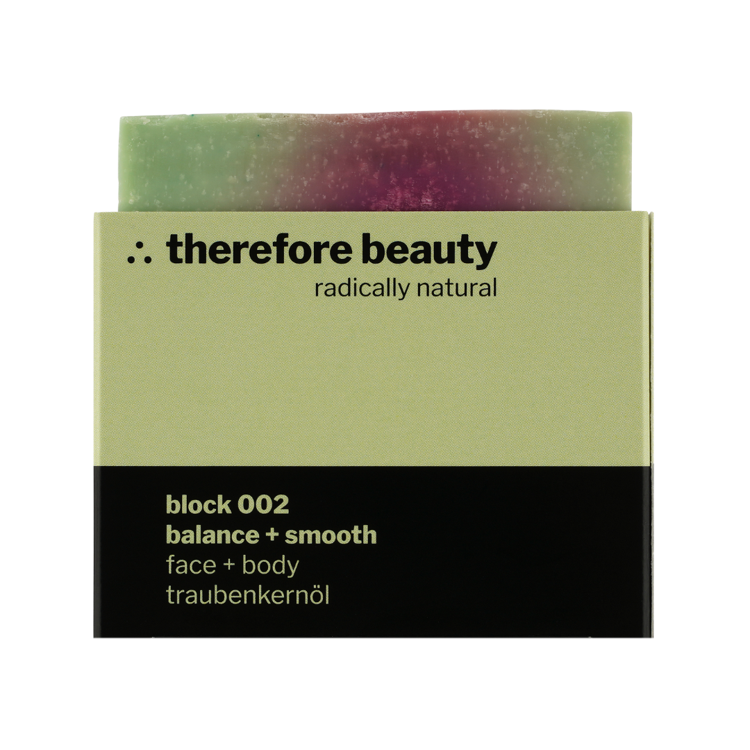 Block 002 ist unsere sanft rückfettende Seife für alle, die milde Reinigung mit regenerierender Pflege kombinieren wollen: