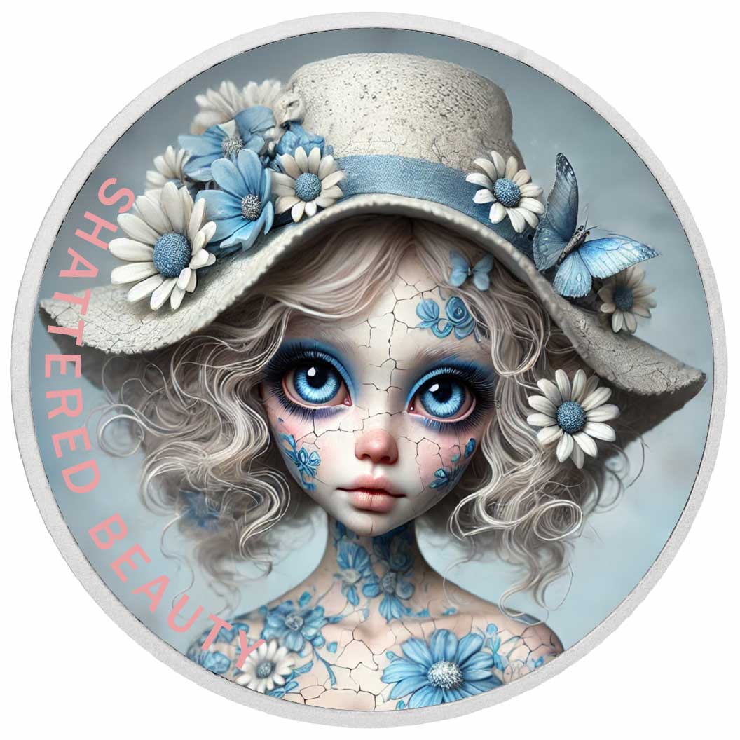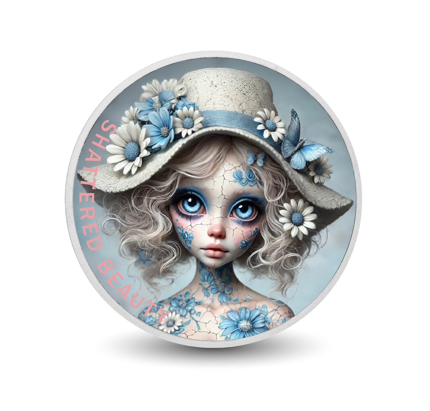 With delicate blue daisies blossoming from its cracks, this coin represents the idea that even in moments of pain, beauty can flourish. Its design is completed with a wide-brimmed sun hat, adorned with blossoms and a pale blue butterfly, offering an appearance of innocence coupled with a deeper narrative that resonates with the soul.